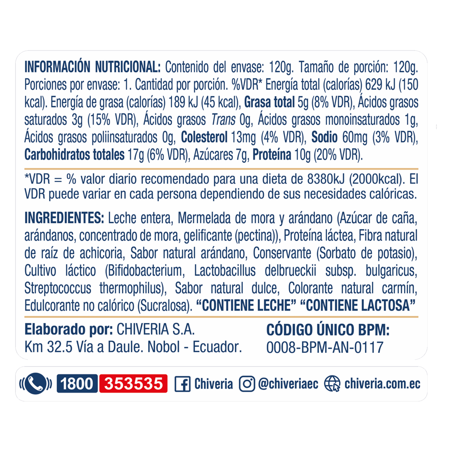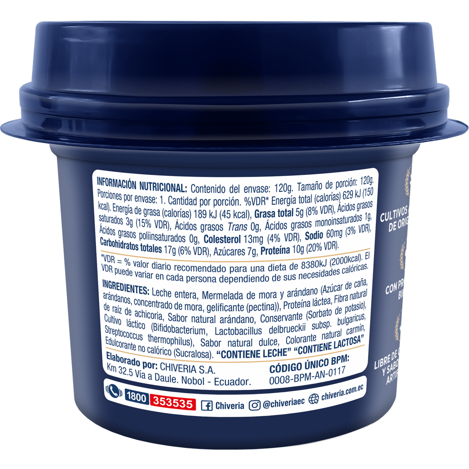 Yogurt Griego Mora Arándanos CHIVERIA 120 G – CHIVERIA. Disponible en nuestros locales. Precio y stock pueden variar según la tienda.