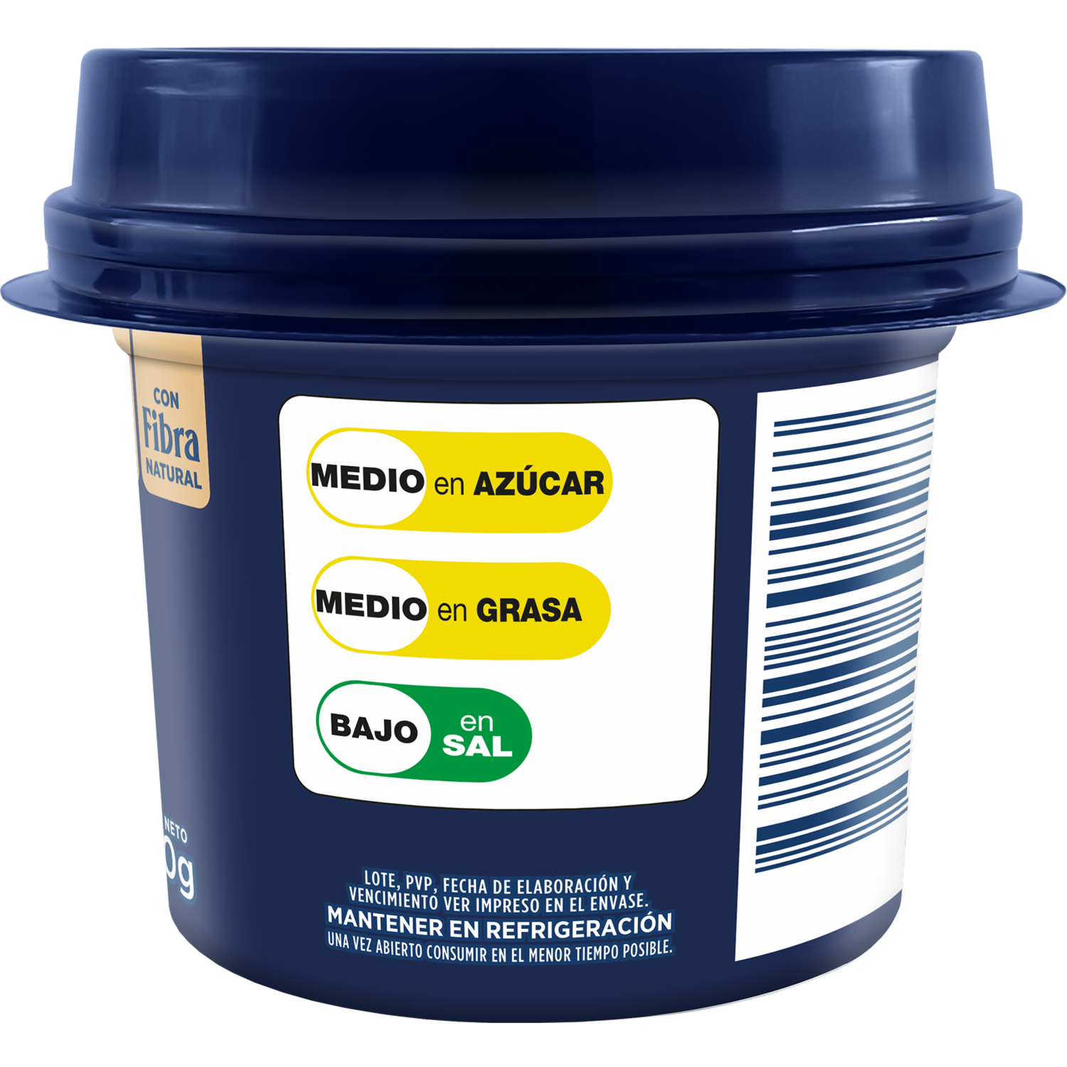 Con fibra natural, 0% Azúcar añadida, Alto en proteína, Cultivos de origen griego, Con probióticos Bifidus, Libre de colorantes y saborizantes artificiales