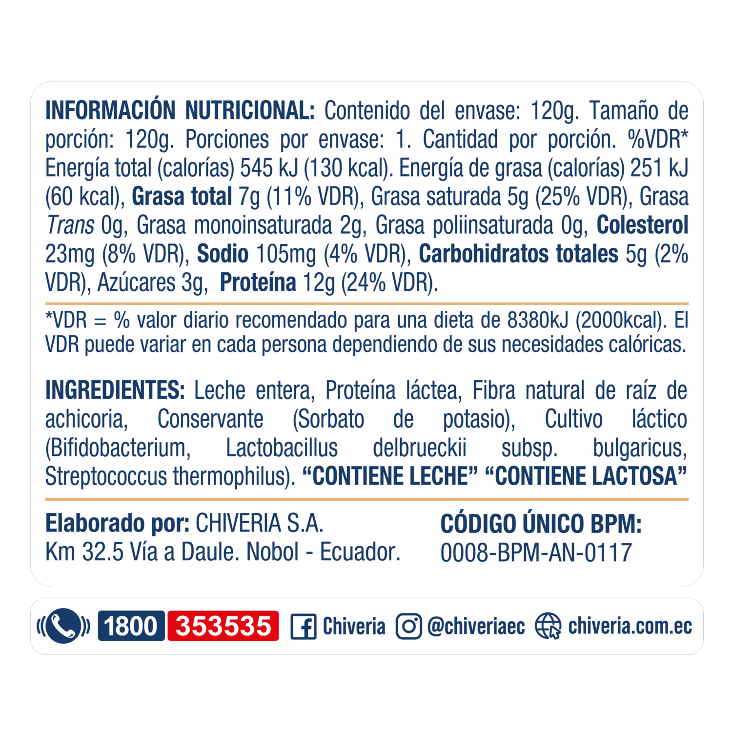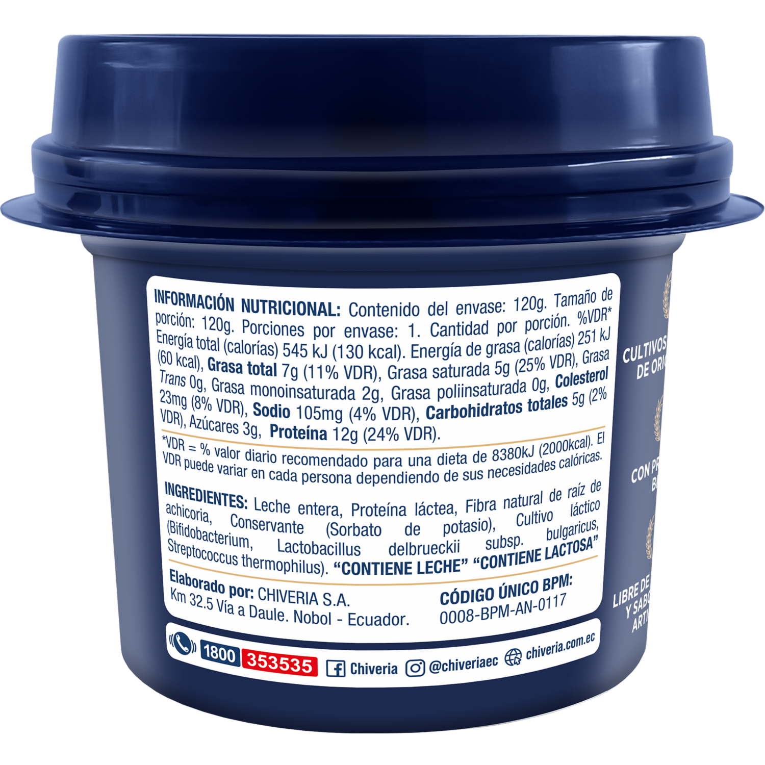 Yogurt Griego Natural CHIVERIA 120 G – CHIVERIA. Disponible en nuestros locales. Precio y stock pueden variar según la tienda.
