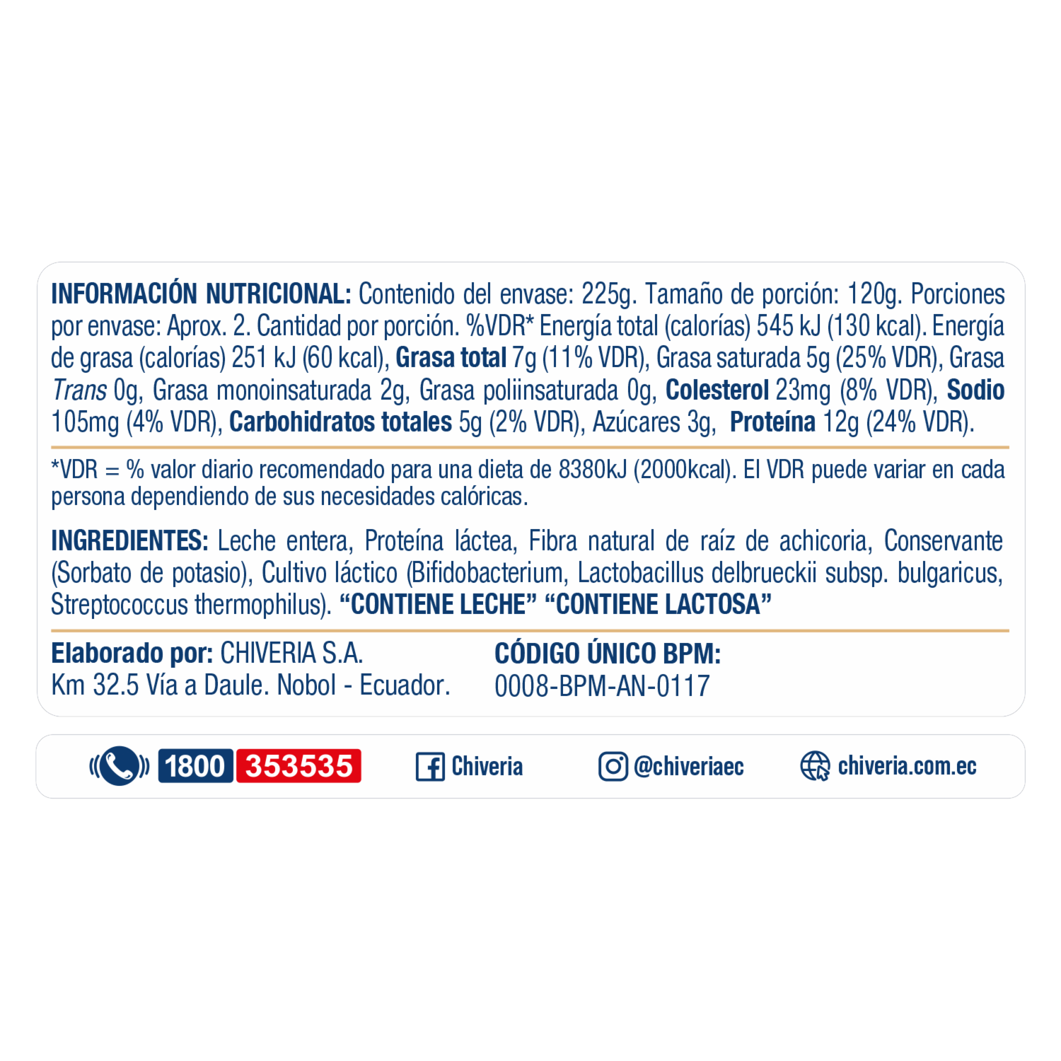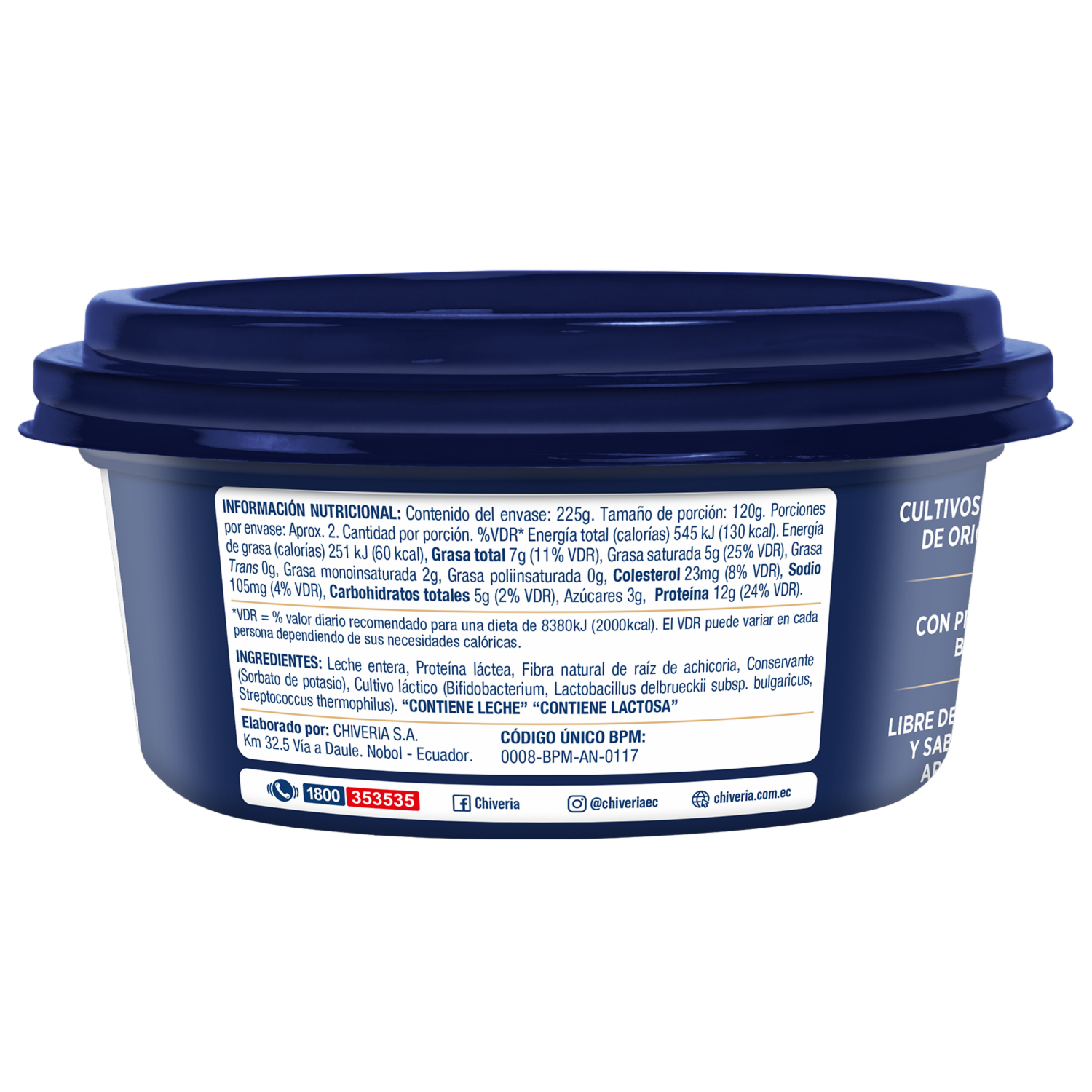 Yogurt Griego Natural CHIVERIA 225 G – CHIVERIA. Disponible en nuestros locales. Precio y stock pueden variar según la tienda.