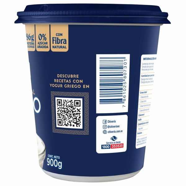 Con fibra natural, 0% Azúcar añadida, Alto en proteína, Cultivos de origen griego, Con probióticos Bifidus, Libre de colorantes y saborizantes artificiales