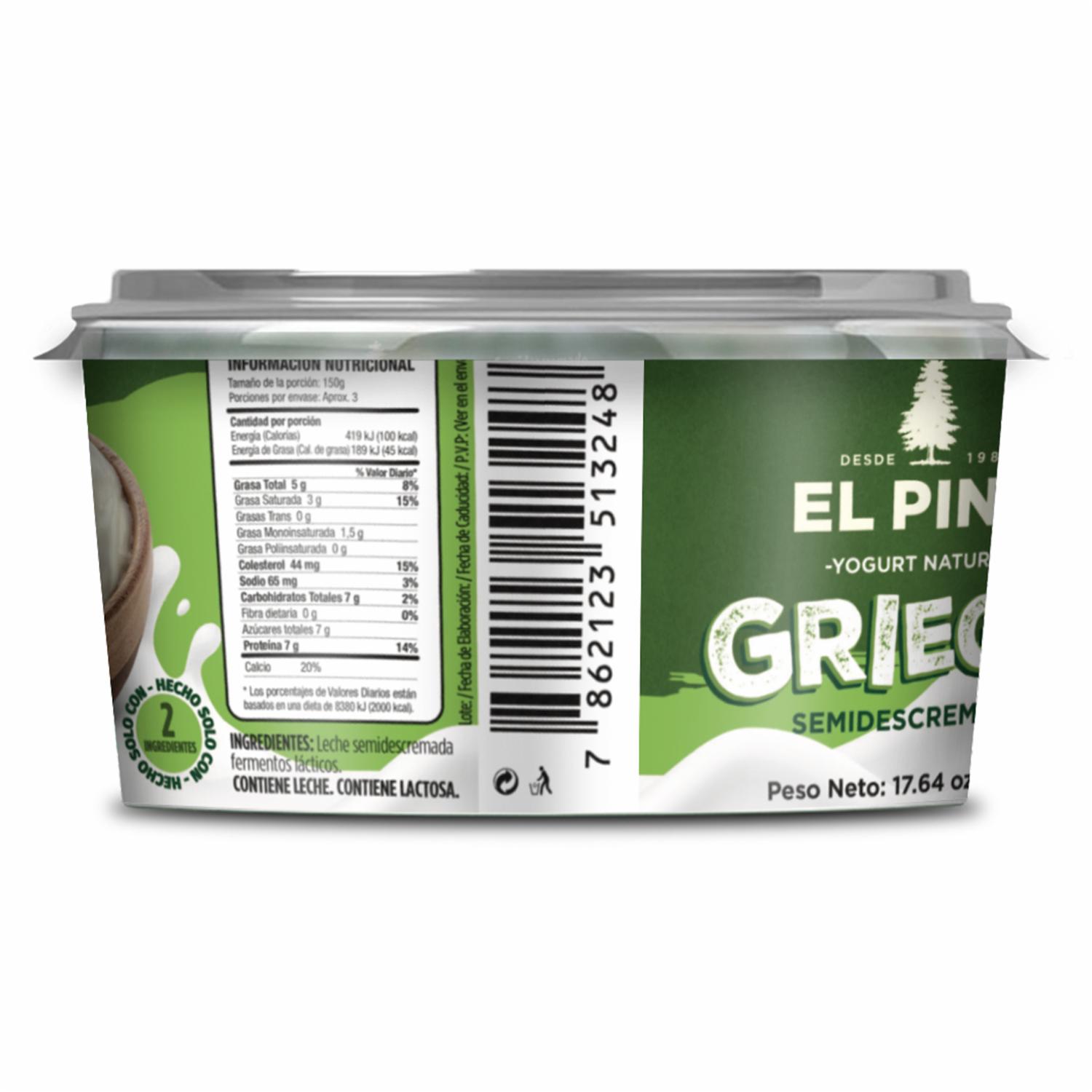Yogurt Griego Semidescremado Natural EL PINO 500 G