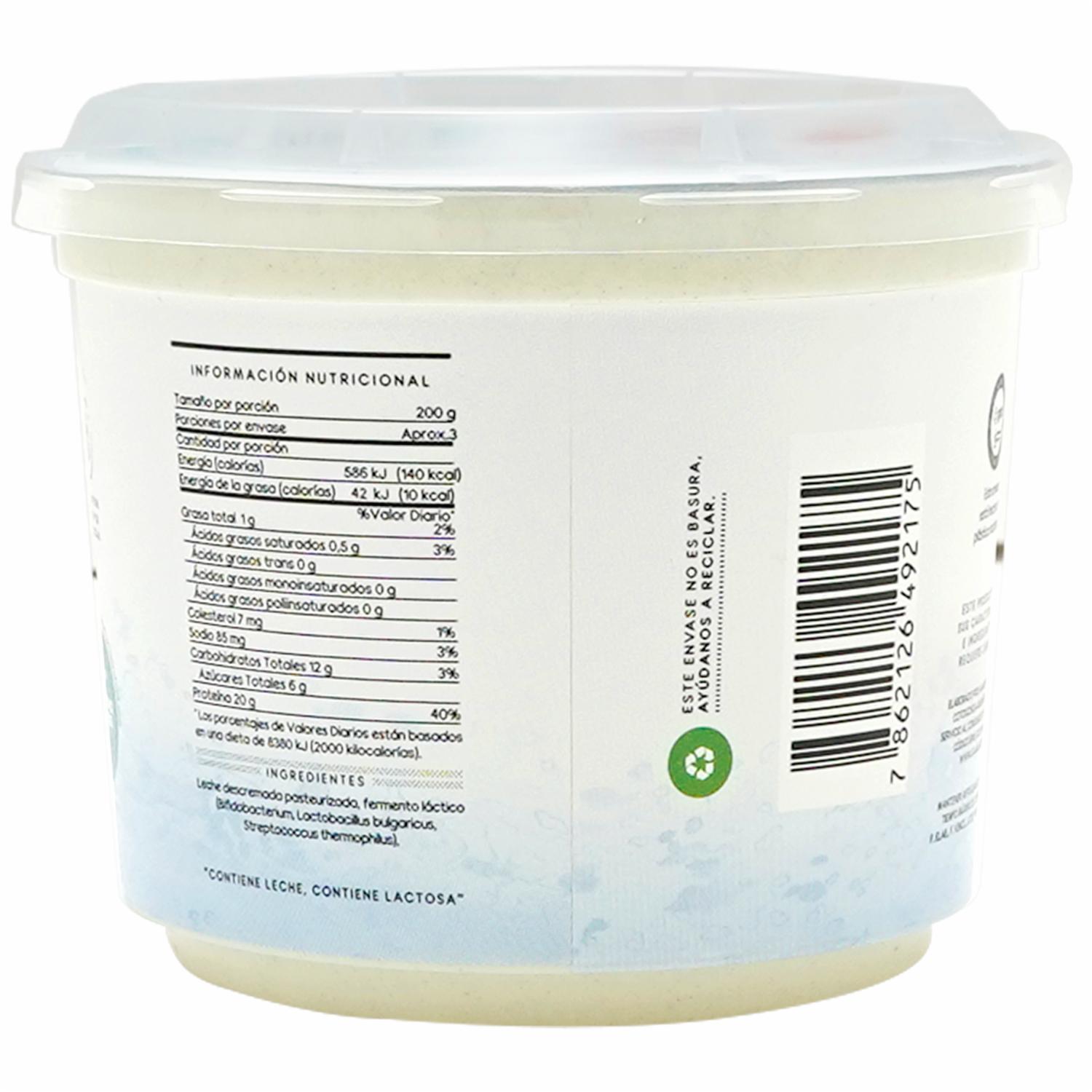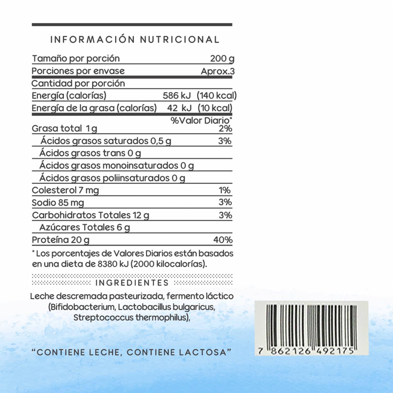 • Yogurt GRIEGO descremado 100 por ciento natural, ALTO en proteína, SIN azúcares ni endulzantes artificiales