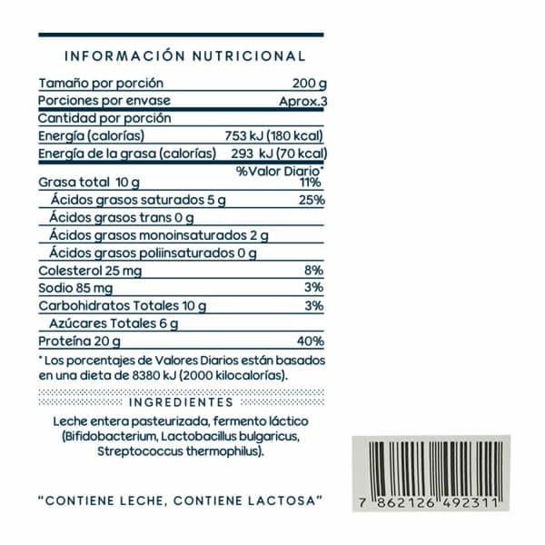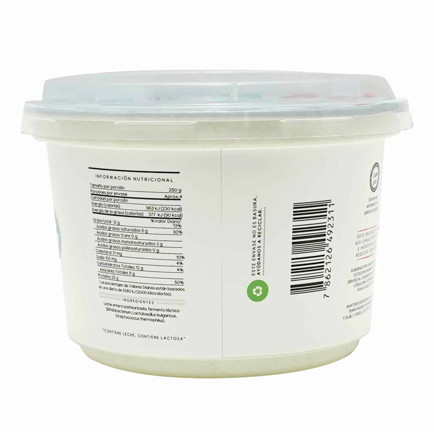 • Yogurt GRIEGO entero 100 por ciento natural, ALTO en proteína, SIN azúcares ni endulzantes artificiales