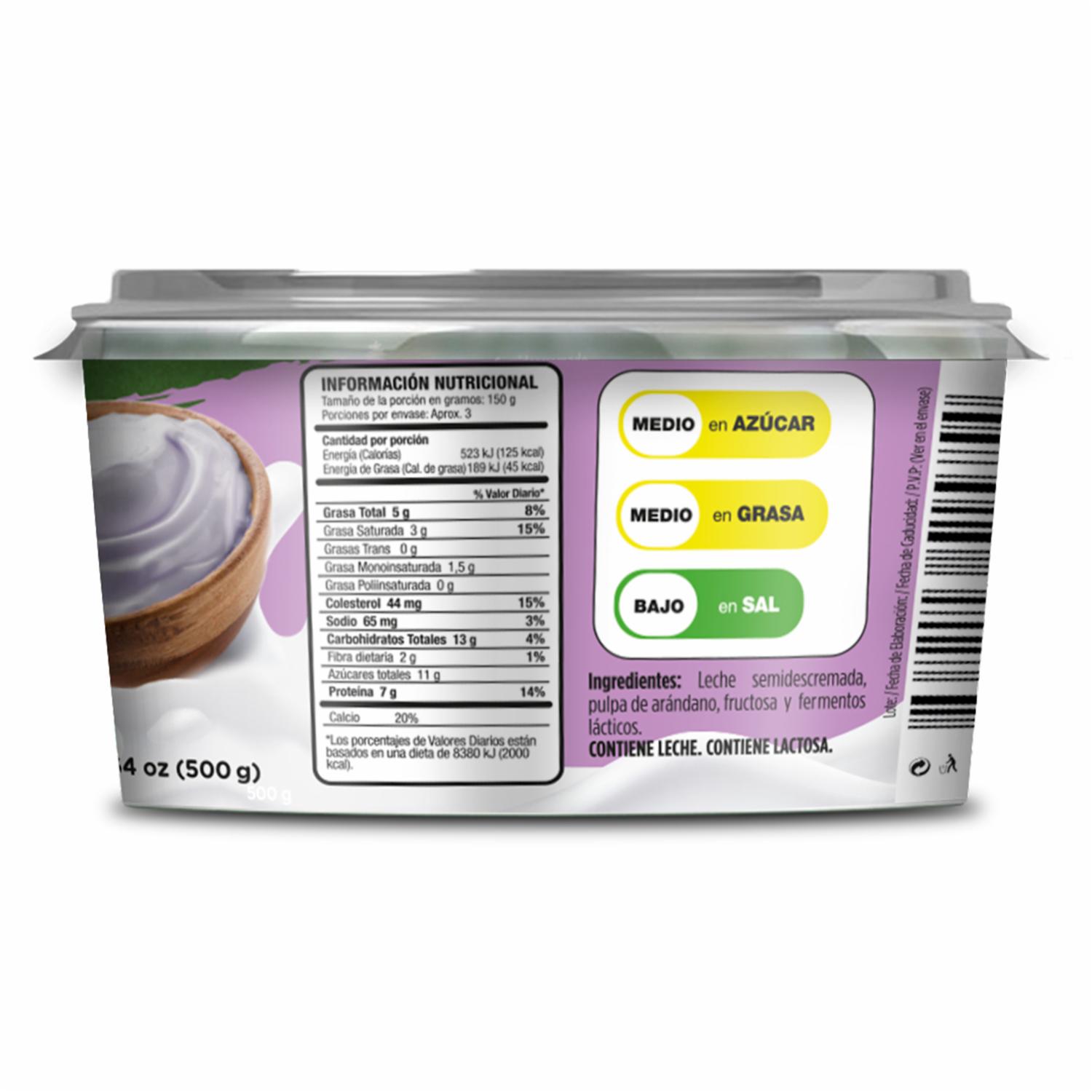 • Cada cucharada está de sabor repleta de un sabor a arándanos que aportan un toque natural de dulzura y un impulso antioxidante. Este yogur es ideal como un snack saludable, un complemento para tu desayuno, o como un delicioso acompañamiento en tus recetas favoritas
