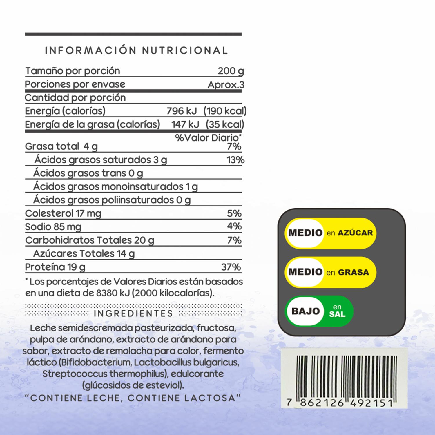 • Yogurt GRIEGO 100 por ciento natural de arándano, ALTO en proteína, SIN azúcar refinada, hecho con frutal REAL