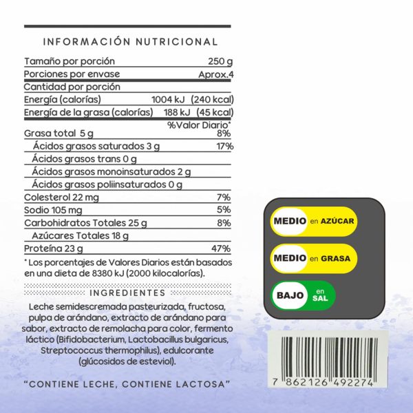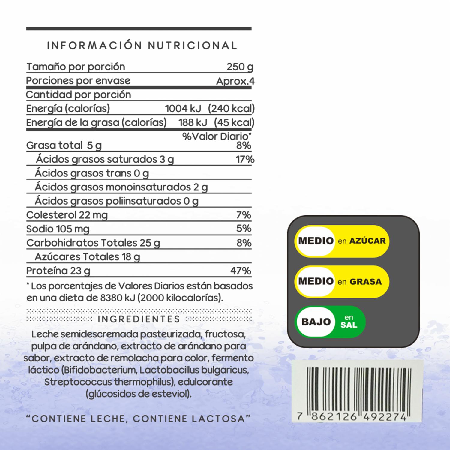 • Yogurt GRIEGO 100 por ciento natural de arándano, ALTO en proteína, SIN azúcar refinada, hecho con frutal REAL