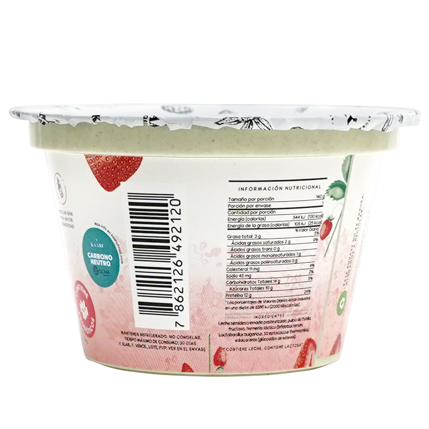 - Yogurt GRIEGO 100 por ciento natural de frutilla, ALTO en proteína, SIN azúcar refinada, hecho con frutal REAL
