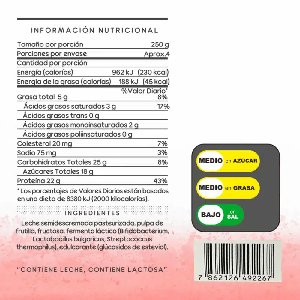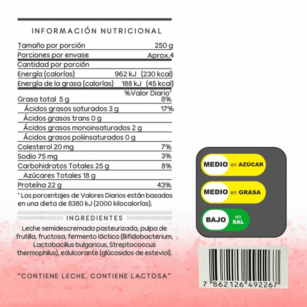 • Yogurt GRIEGO 100 por ciento natural de frutilla, ALTO en proteína, SIN azúcar refinada, hecho con frutal REAL