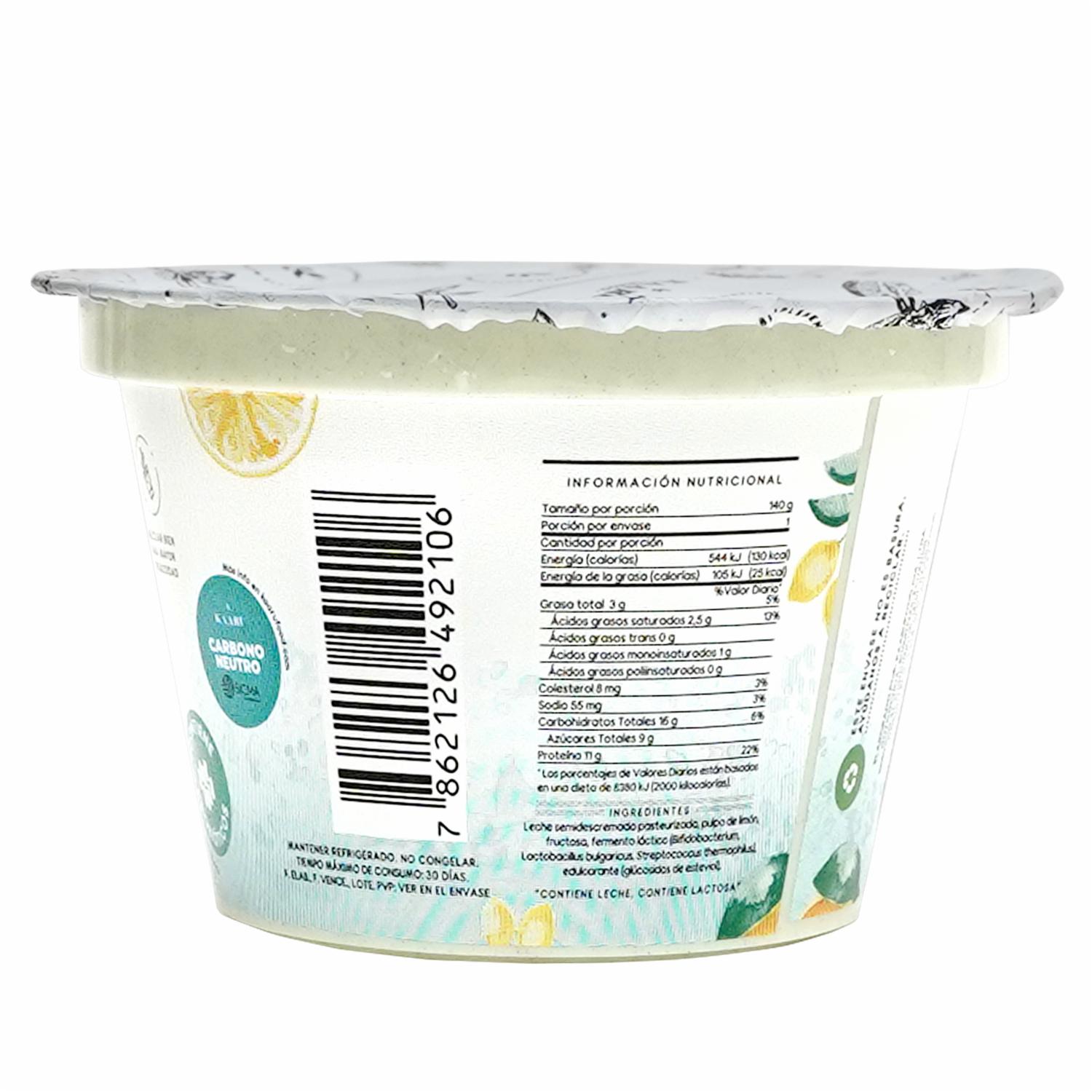 - Yogurt GRIEGO 100 por ciento natural de limón, ALTO en proteína, SIN azúcar refinada, hecho con frutal REAL