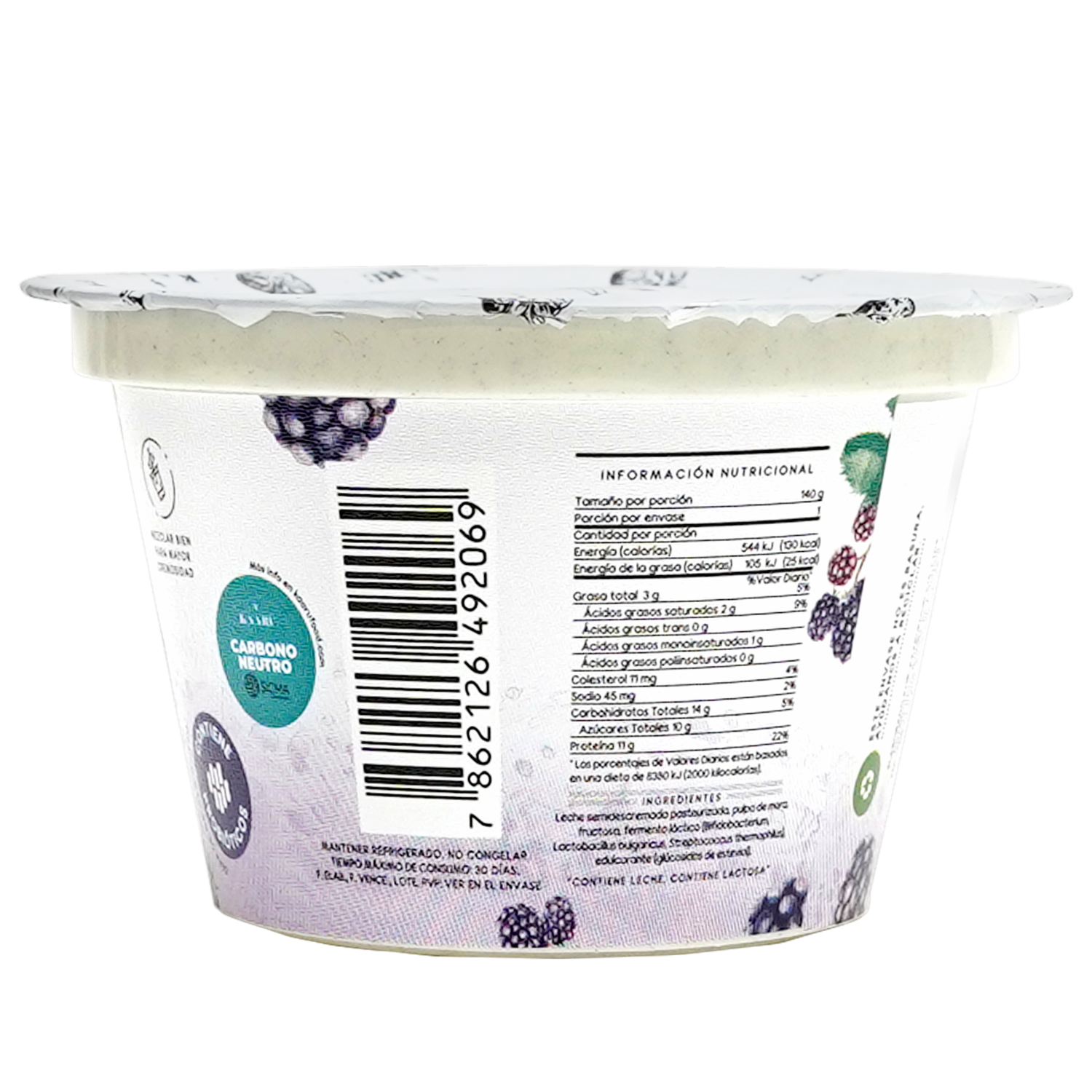 - Yogurt GRIEGO 100 por ciento natural de mora, ALTO en proteína, SIN azúcar refinada, hecho con frutal REAL