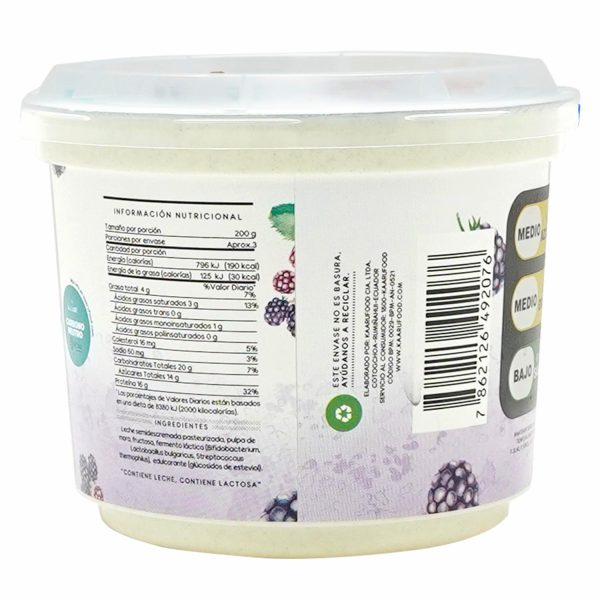 • Yogurt GRIEGO 100 por ciento natural de mora, ALTO en proteína, SIN azúcar refinada, hecho con frutal REAL