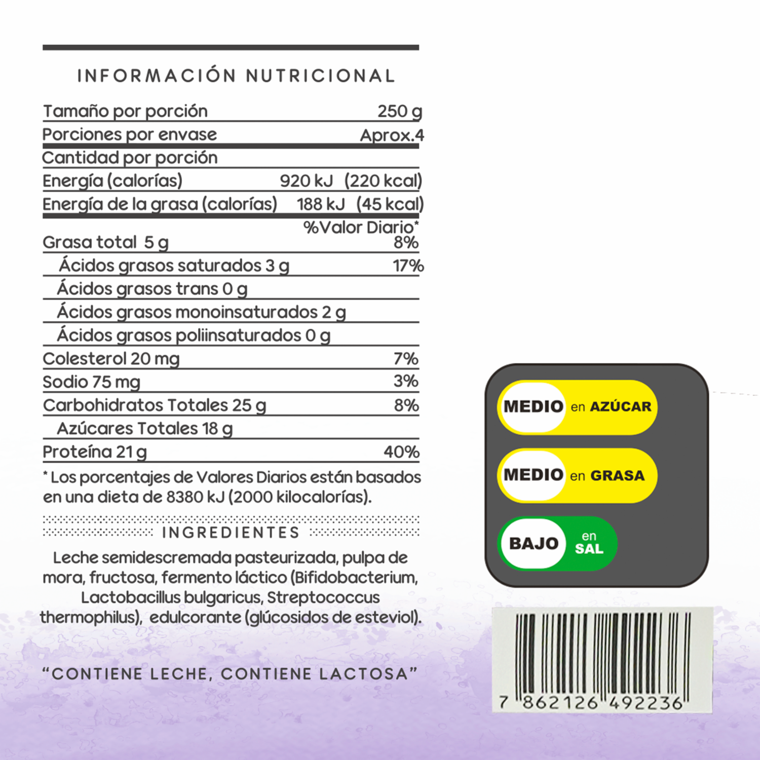 - Yogurt GRIEGO 100 por ciento natural de mora, ALTO en proteína, SIN azúcar refinada, hecho con frutal REAL