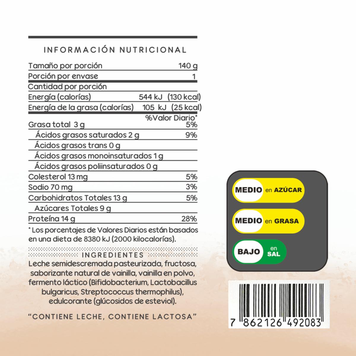 • Yogurt GRIEGO 100 por ciento natural sabor vainilla, ALTO en proteína, SIN azúcar refinada, hecho con frutal REAL