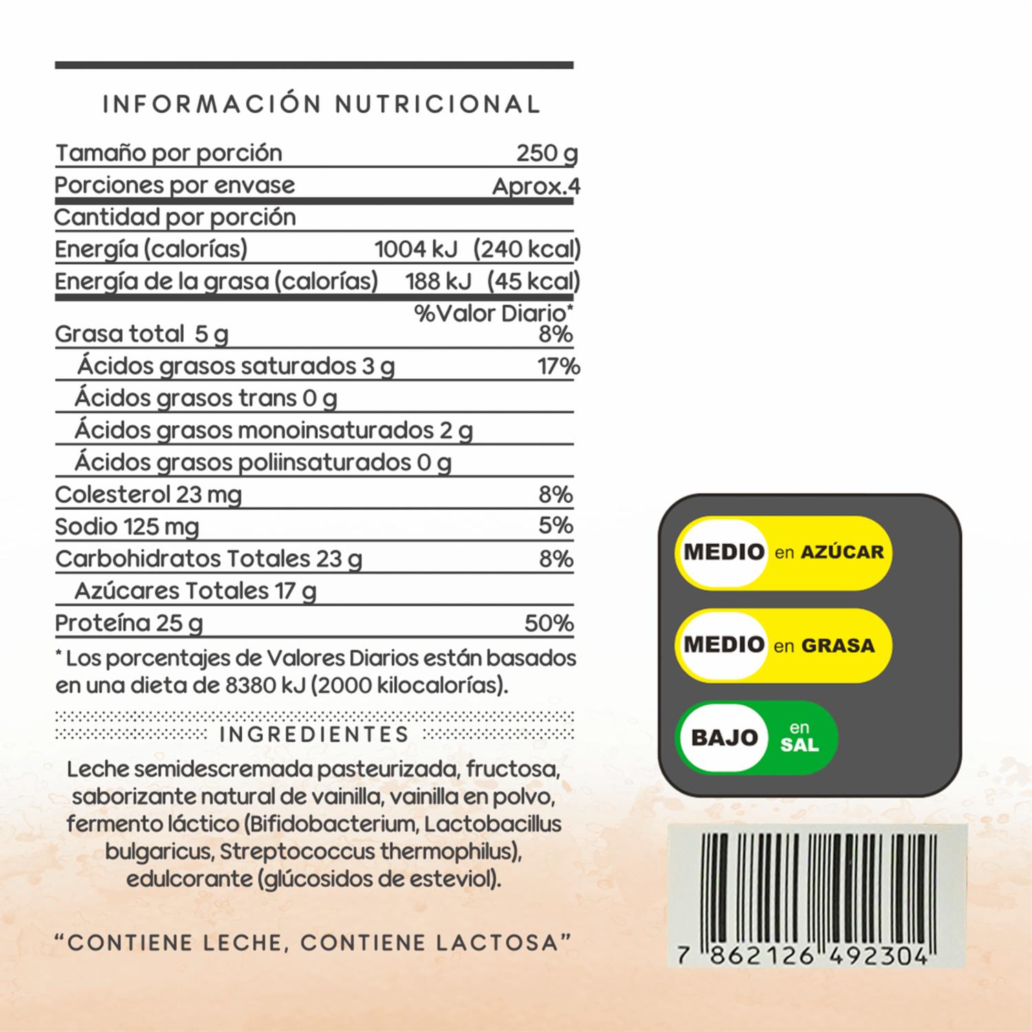 • Yogurt GRIEGO 100 por ciento natural sabor vainilla, ALTO en proteína, SIN azúcar refinada, hecho con frutal REAL
