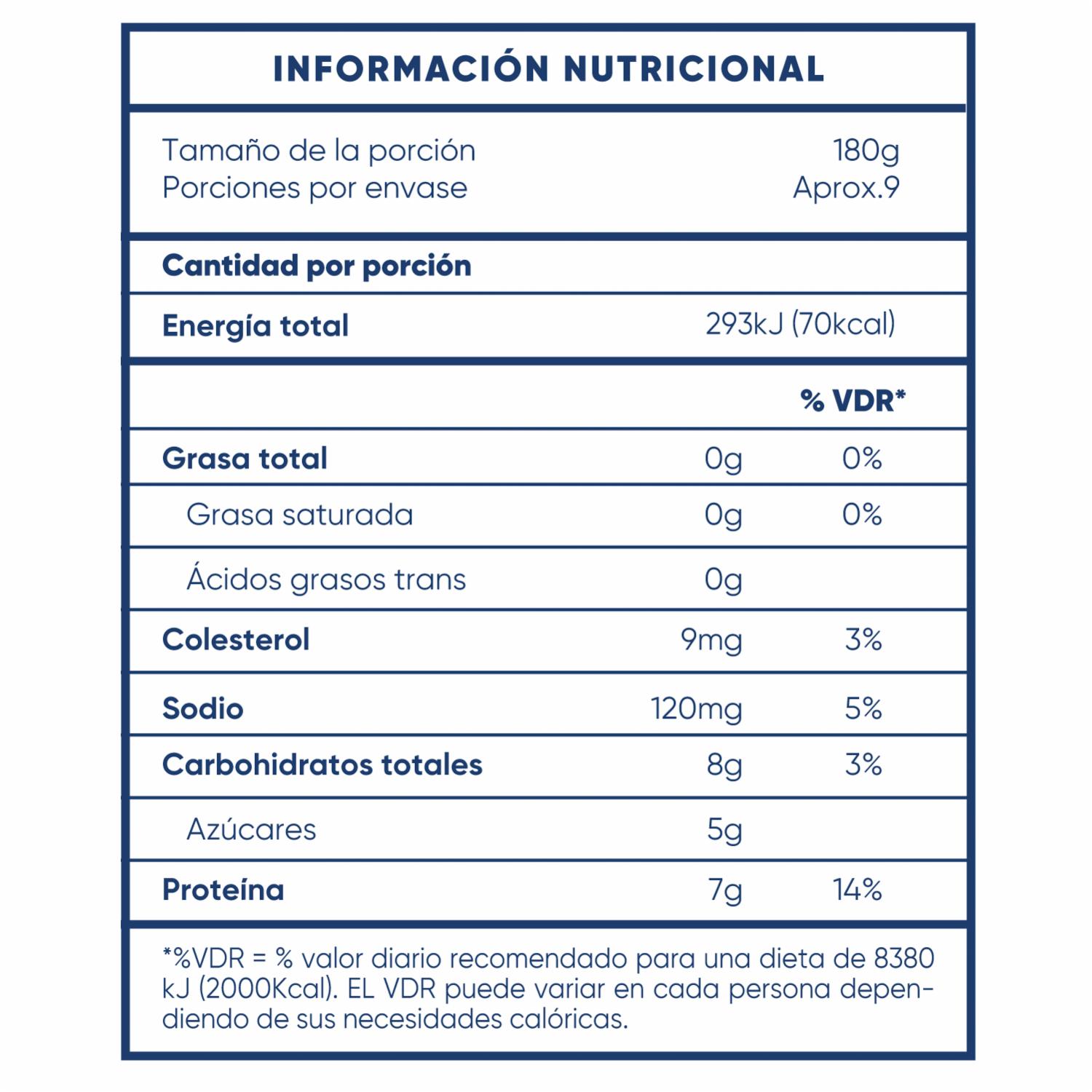 - Yogurt light 0% grasa, libre de colorantes y saborizantes artificiales