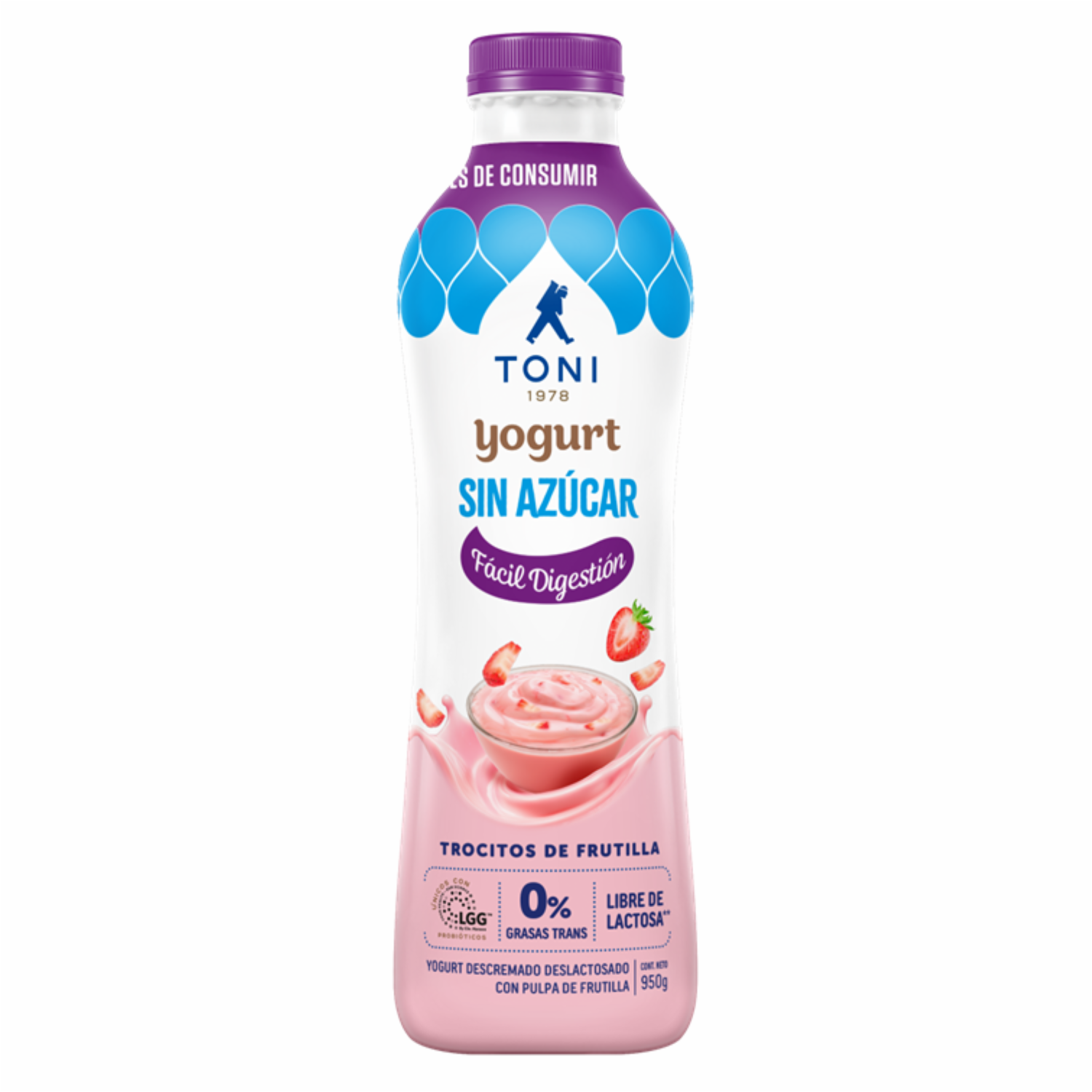 Yogurt Sin Azúcar Deslactosado Con Trocitos De Frutas TONI 950 G