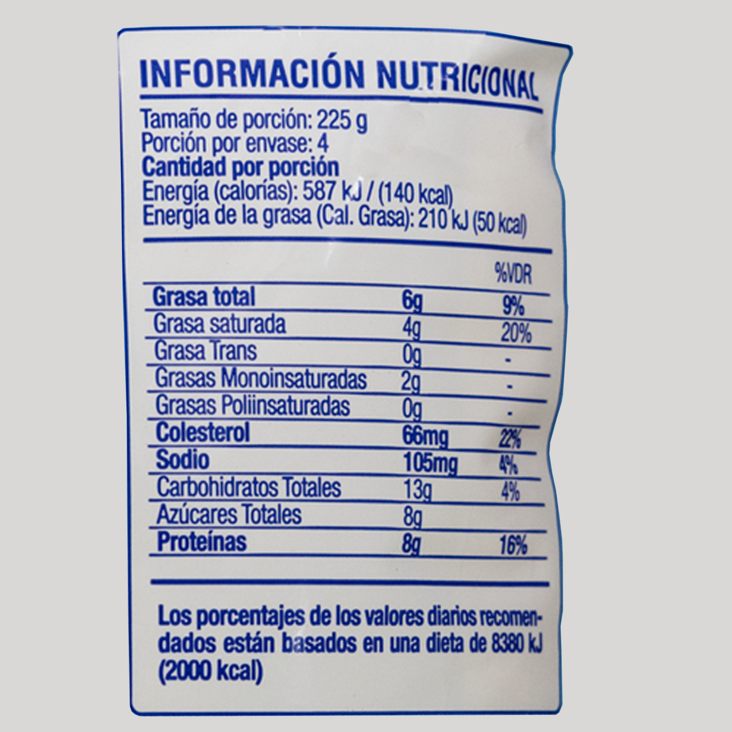 - Contiene leche, contiene lactosa, contiene probióticos, sin colorantes, sin saborizantes artificiales. Conservar en refrigeración. Consumir preferentemente antes de la fecha indicada en el envase. Agite el producto antes de consumir
