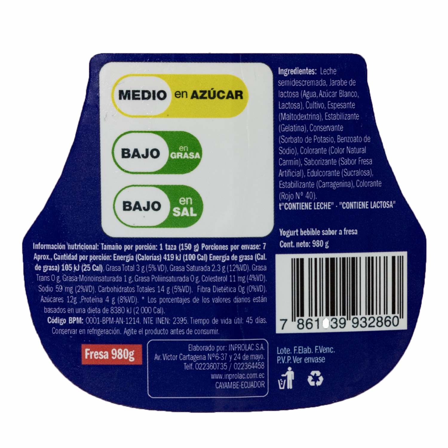 consultando preciosYogurt Semidescremado Bebible Sabor A Fresa DULACS 980 G – DULACS. Disponible en nuestros locales. Precio y stock pueden variar según la tienda.