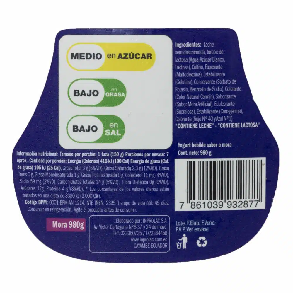 Yogurt Semidescremado Bebible Sabor A Mora DULACS 980 G – DULACS. Disponible en nuestros locales. Precio y stock pueden variar según la tienda.