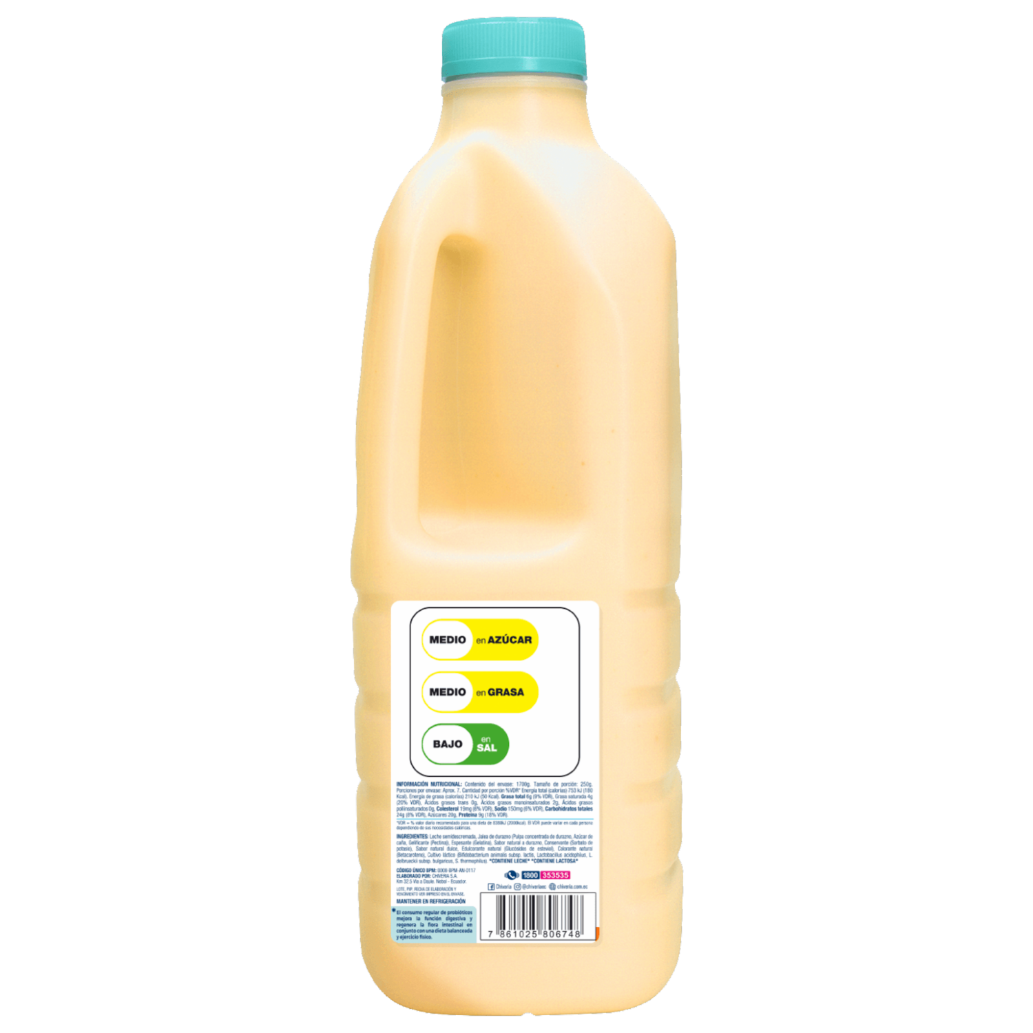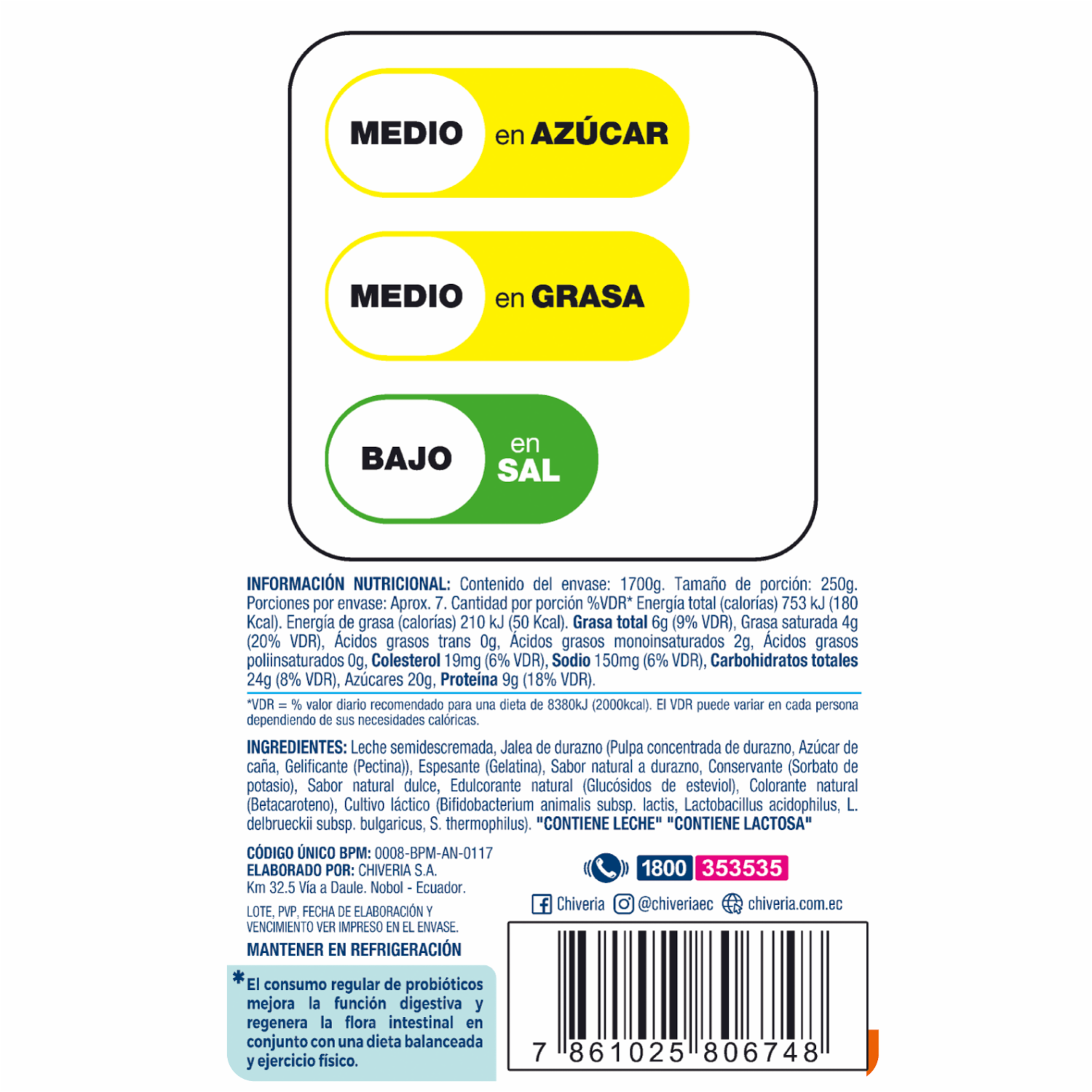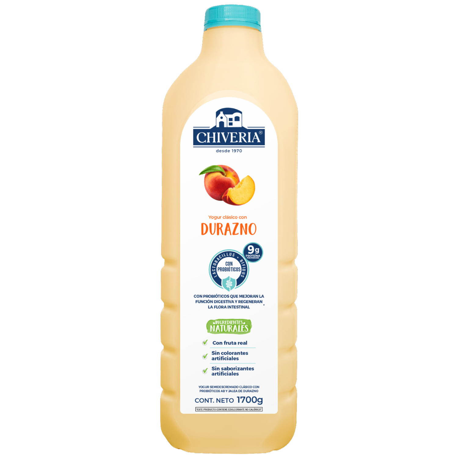 - Yogur CHIVERIA sin azúcar, libre de colorantes y saborizantes artificiales. Elaborado con yogurt semidescremado clásico con probióticos AB. Este producto contiene edulcorante no calórico