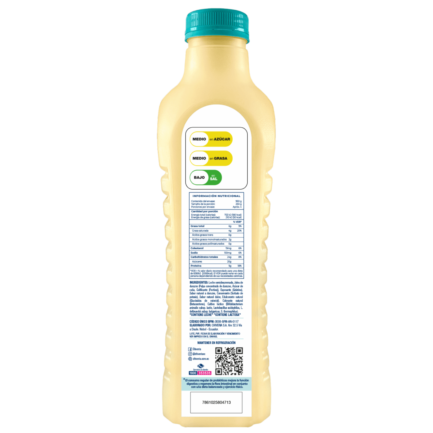 - Yogur CHIVERIA sin azúcar, libre de colorantes y saborizantes artificiales. Elaborado con yogurt semidescremado clásico con probióticos AB. Este producto contiene edulcorante no calórico