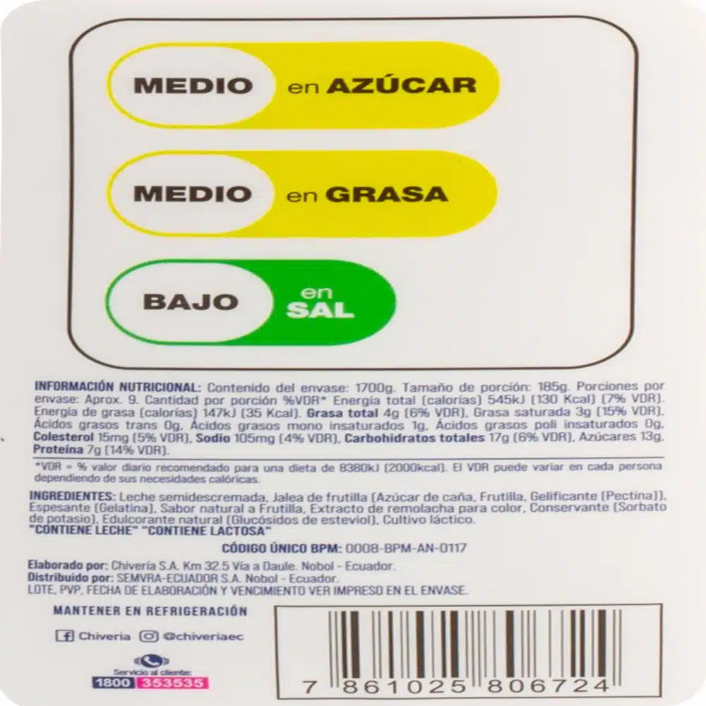 Yogurt Semidescremado Con Pulpa De Frutilla CHIVERIA 1700 G