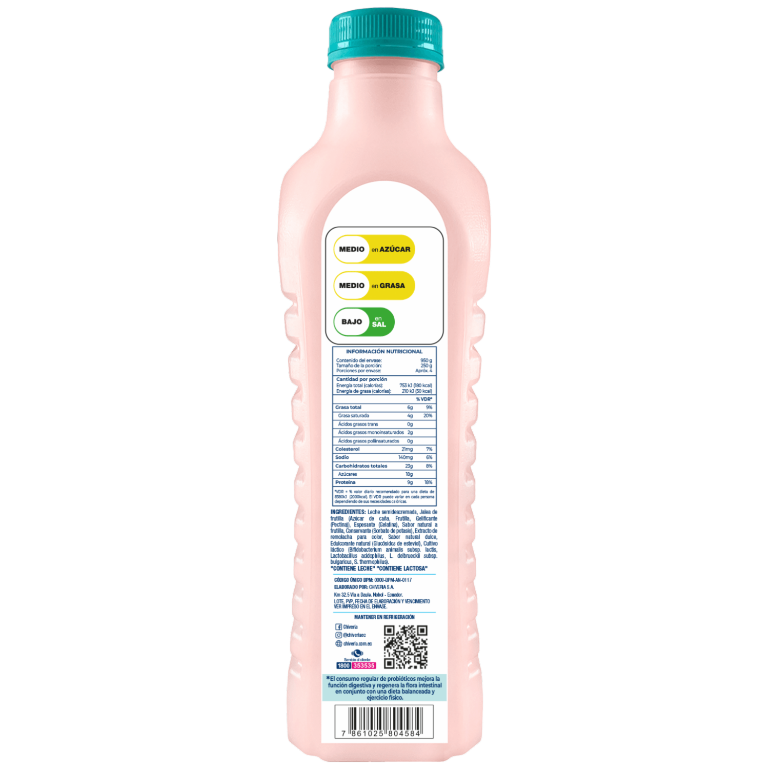 - Yogur CHIVERIA sin azúcar, libre de colorantes y saborizantes artificiales. Elaborado con yogurt semidescremado clásico con probióticos AB. Este producto contiene edulcorante no calórico