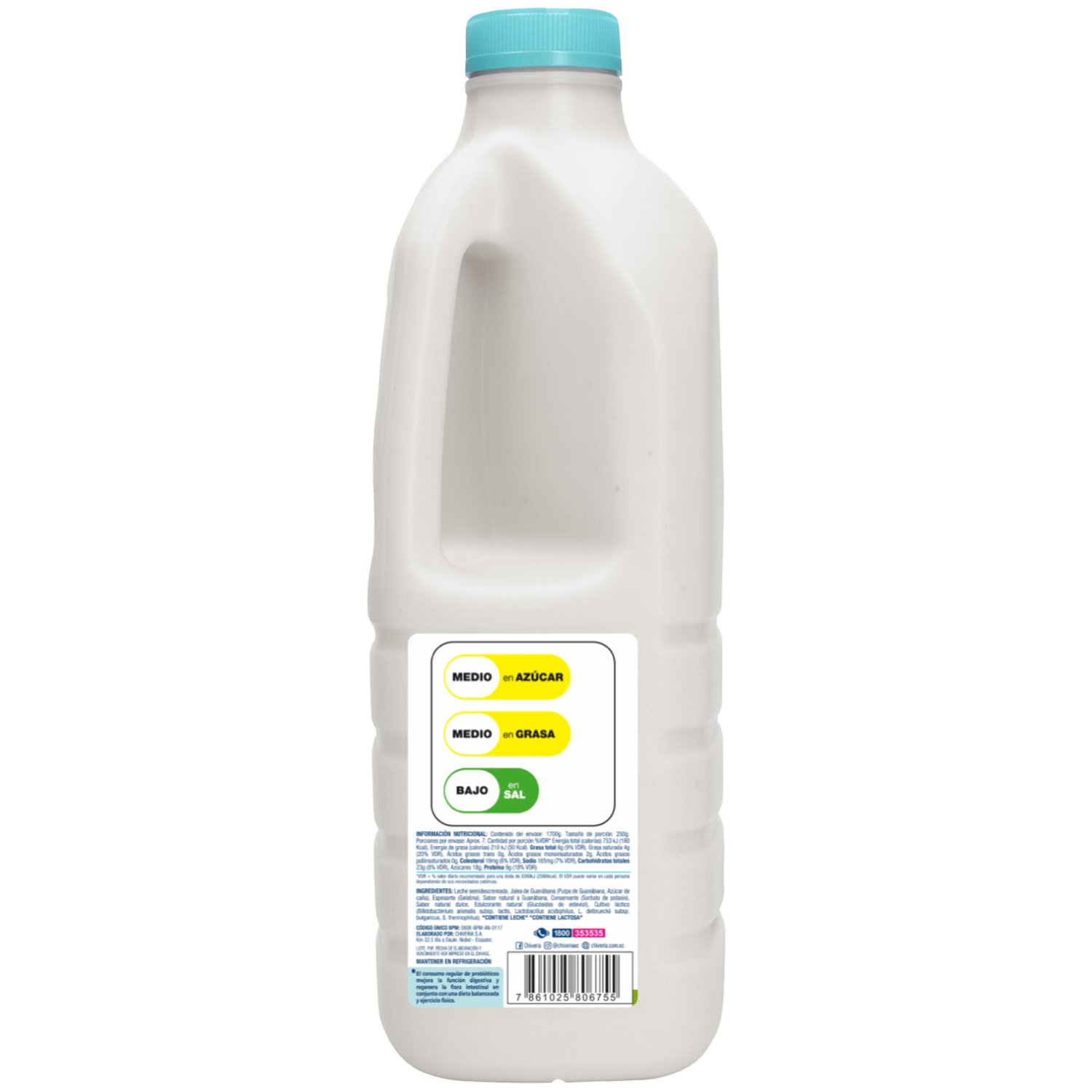 - Yogur CHIVERIA sin azúcar, libre de colorantes y saborizantes artificiales. Elaborado con yogurt semidescremado clásico con probióticos AB. Este producto contiene edulcorante no calórico