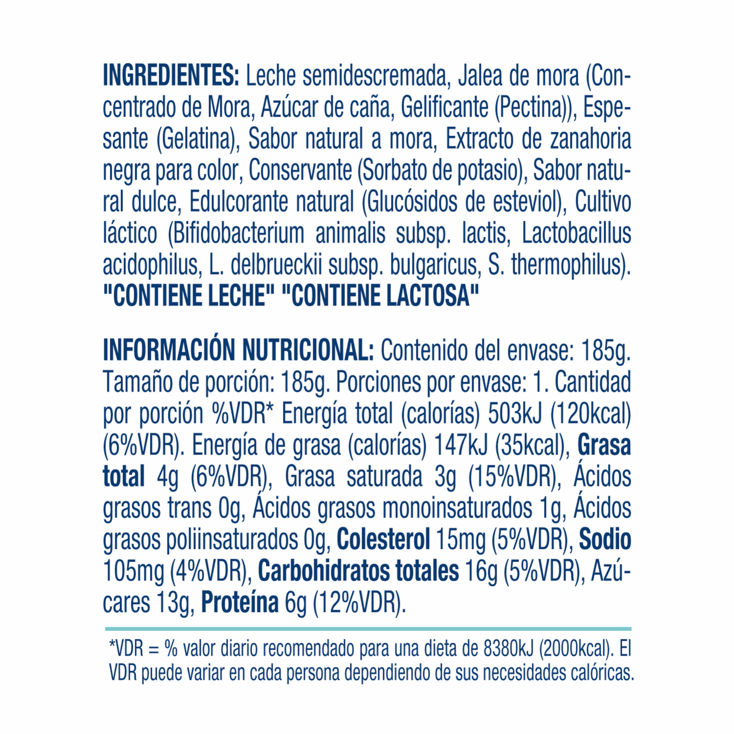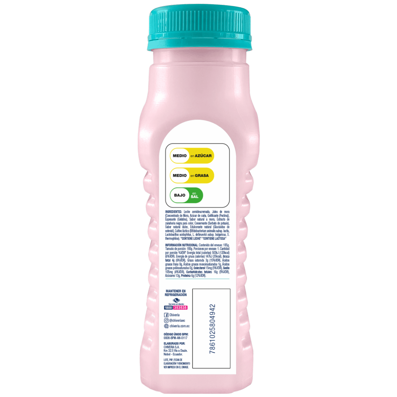 Yogurt Semidescremado Con Pulpa De Mora CHIVERIA 185 G