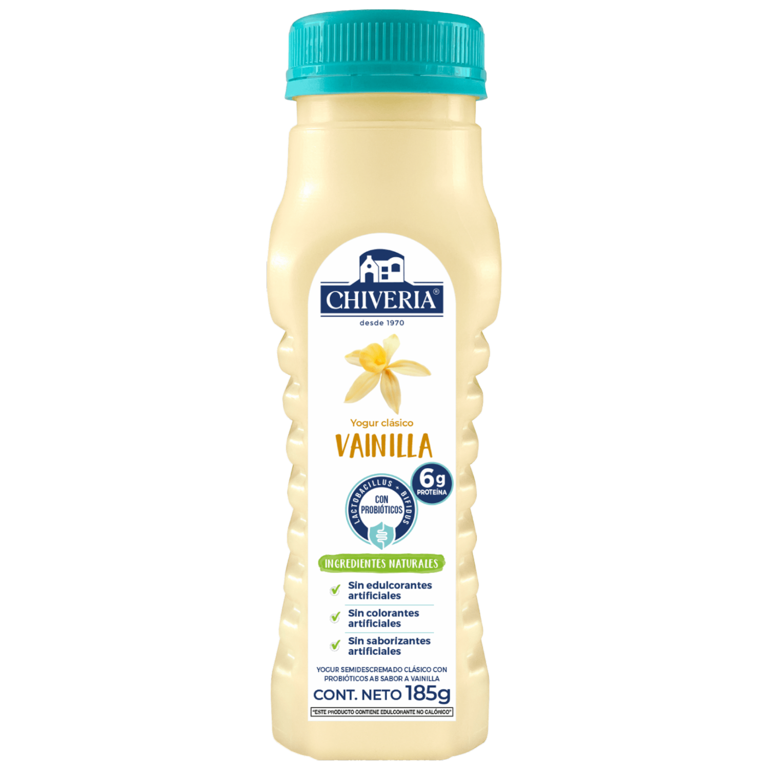 - Yogur CHIVERIA sin azúcar, libre de colorantes y saborizantes artificiales. Elaborado con yogurt semidescremado clásico con probióticos AB. Este producto contiene edulcorante no calórico