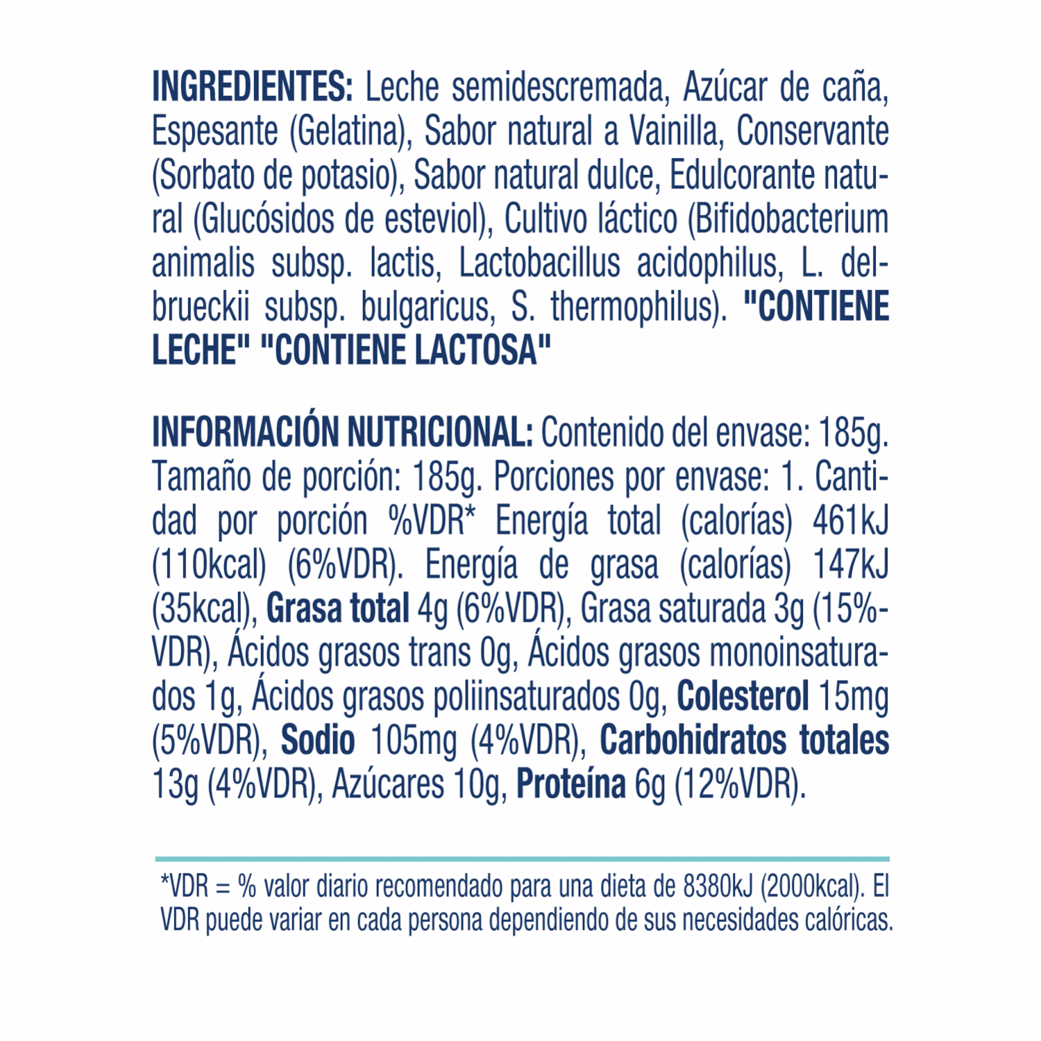 Yogurt Semidescremado Con Sabor A Vainilla CHIVERIA 185 G