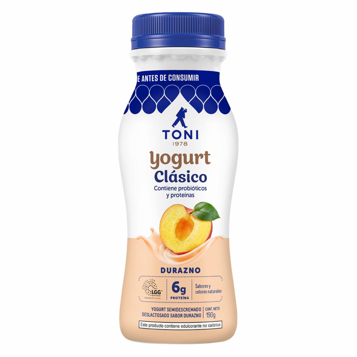 - Delicioso y saludable Yogurt clásico de TONI, semidescremado y deslactosado con LGG y alto en proteína. Sabor Durazno