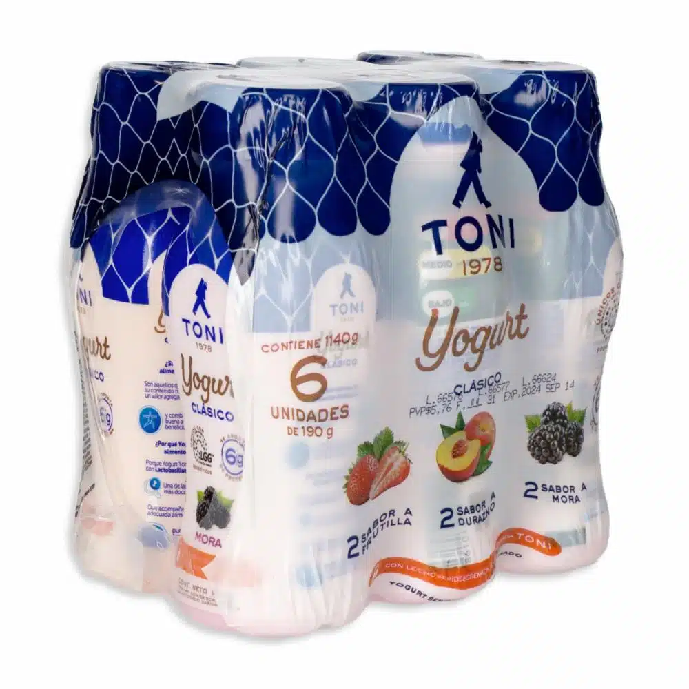 Yogurt Semidescremado Deslactosado Clásico Sabores Surtidos TONI 6 Uds X 190 G