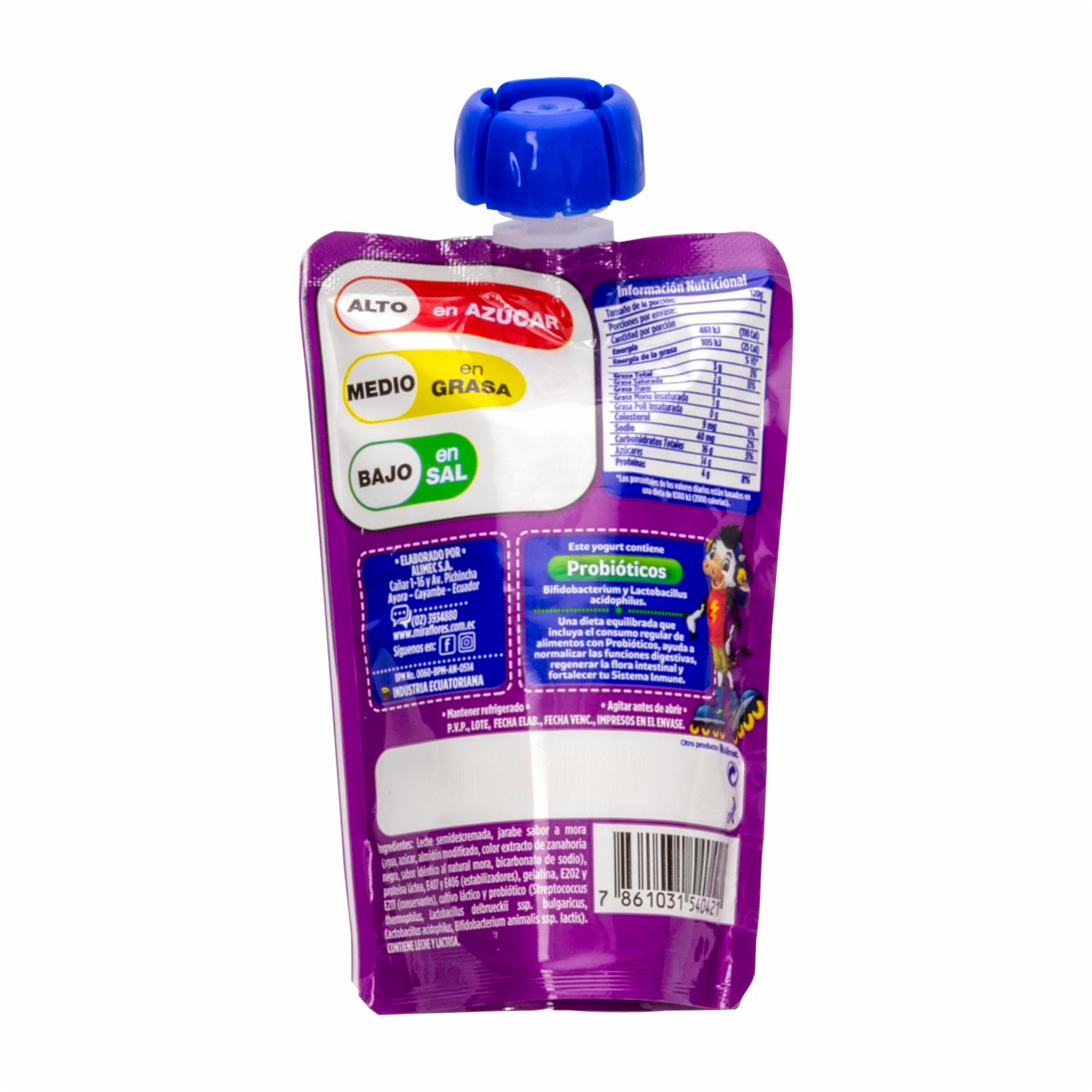 Yogurt Semidescremado Kids Sabor A Mora Con Probióticos MIRAFLORES Doypack 120 G