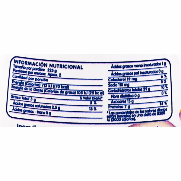 • Yogurt semidescremado: El yogurt semidescremado es bajo en grasa, lo que lo hace una opción más saludable para aquellos que buscan controlar su ingesta de grasa. Sabor a mandarina: El yogurt tiene un delicioso sabor a mandarina, lo que le da un toque refrescante y frutal. Fuente de calcio: El yogurt es una buena fuente de calcio, lo que ayuda a fortalecer los huesos y los dientes
