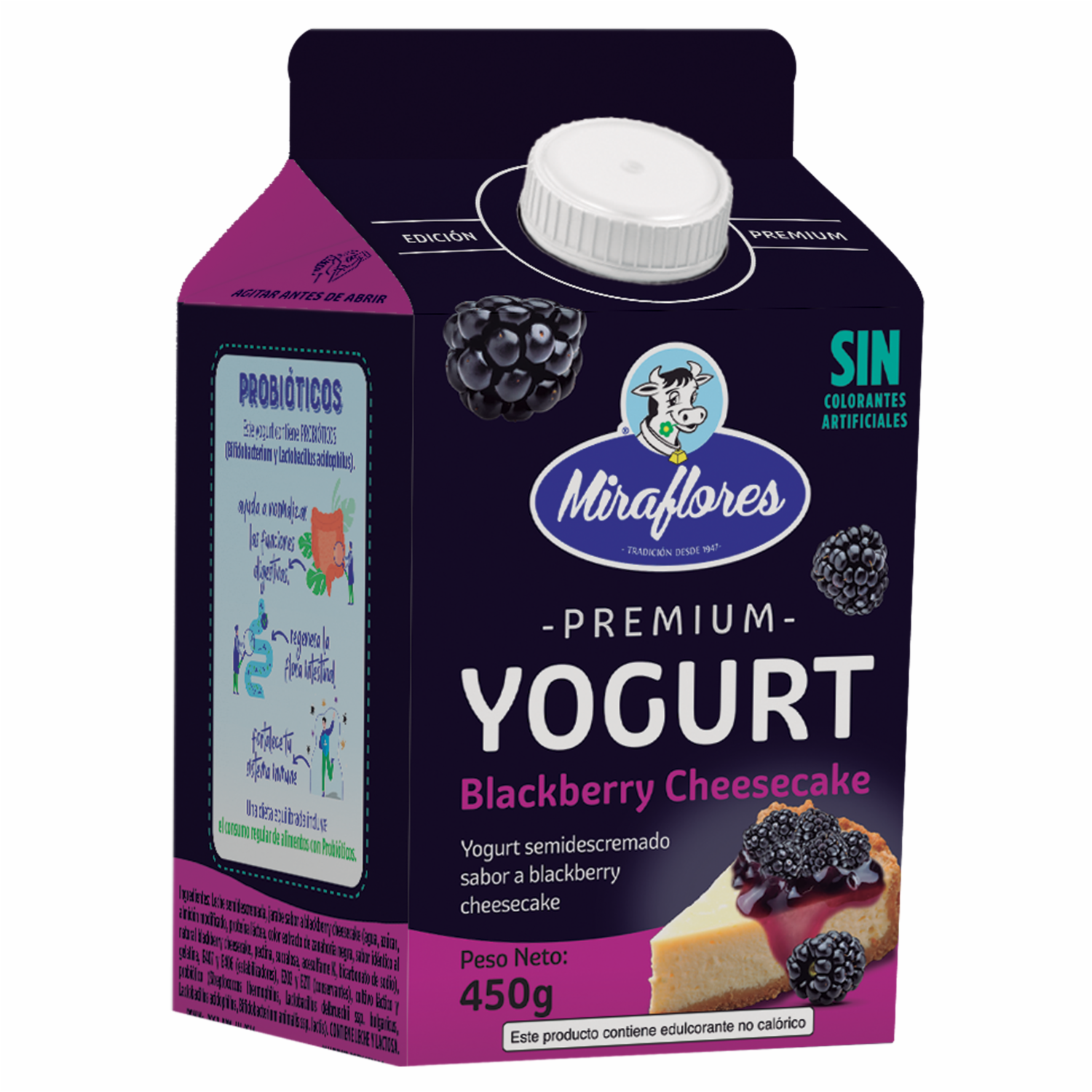 Yogurt Semidescremado Premium Sabor A BlackBerry Cheesecake MIRAFLORES 450 G – MIRAFLORES. Disponible en nuestros locales. Precio y stock pueden variar según la tienda.