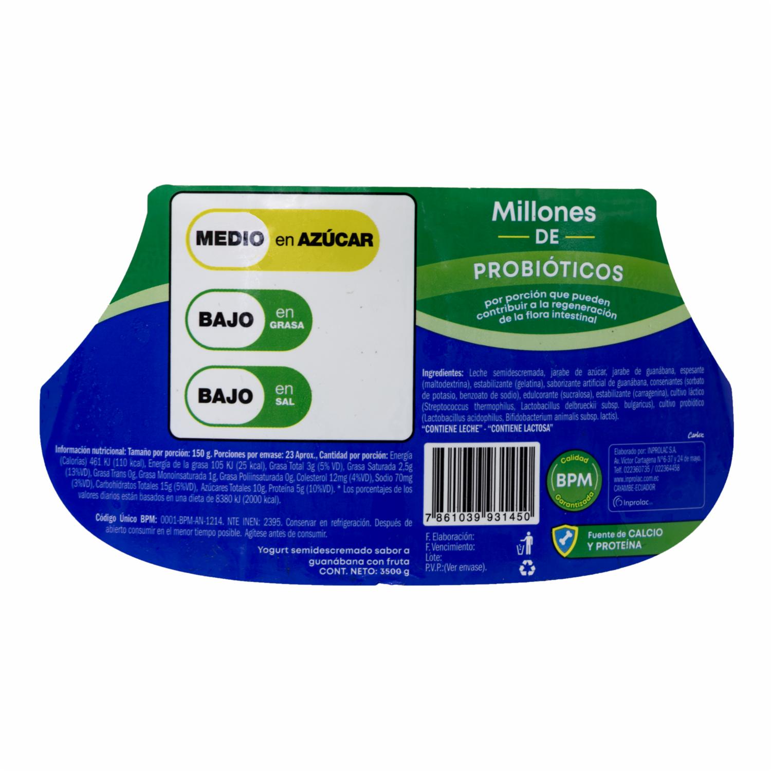 Yogurt Semidescremado Sabor A Guanábana Con Fruta DULACS 3500 G