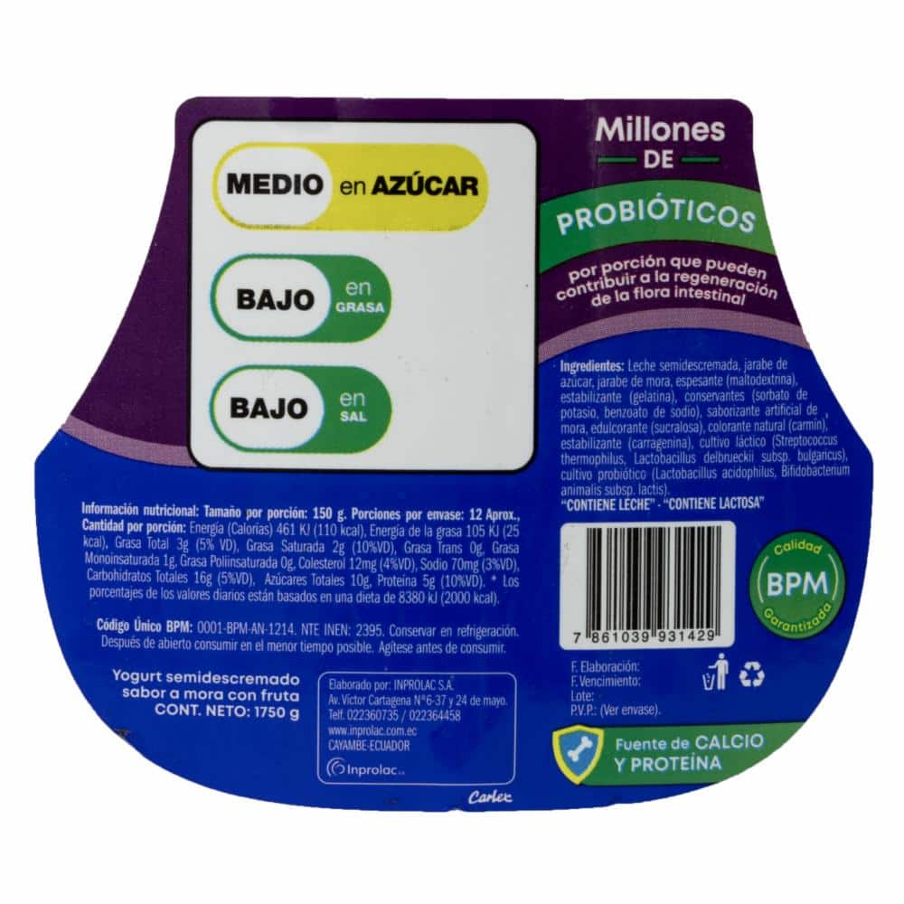 Yogurt Semidescremado Sabor A Mora Con Fruta DULACS 1750 G