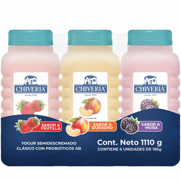 Yogurt Semidescremado Surtido Frutilla Durazno Mora CHIVERIA 6 X 185 G