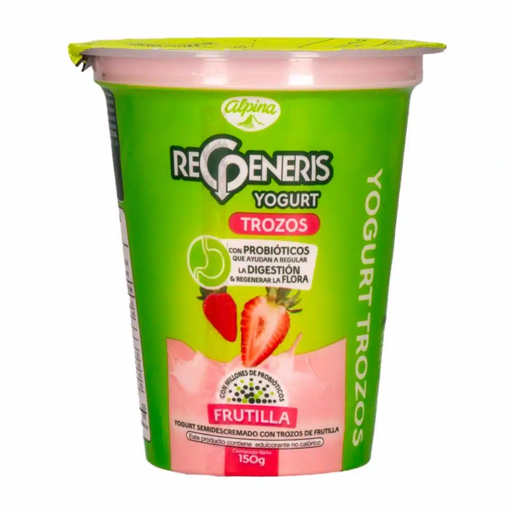 Yogurt Trozos Frutilla REGENERIS 150 g. Mejora, regula y libera el tránsito lento gracias a su perfecta mezcla de probióticos y fibra