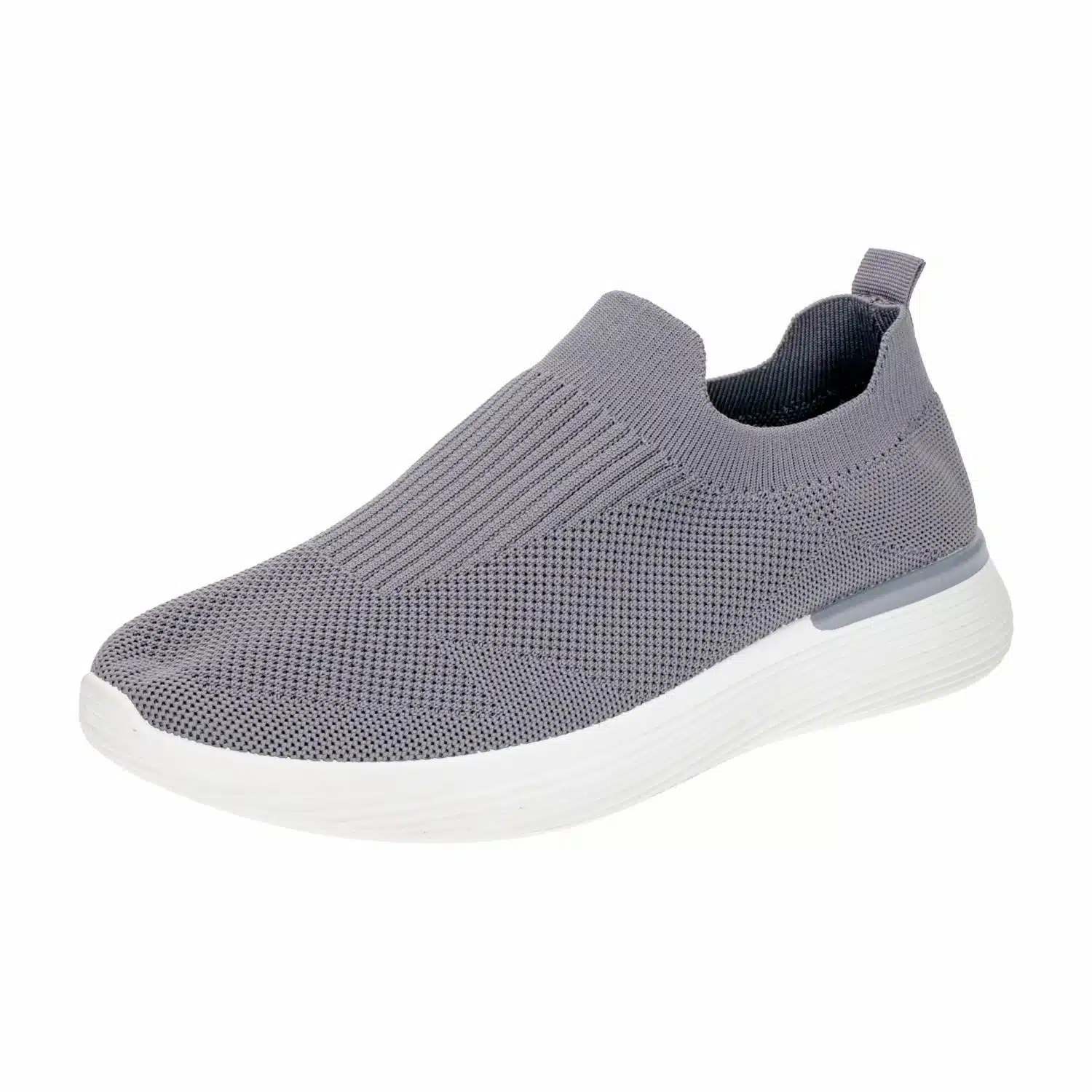 Este zapato deportivo para dama presenta un diseño bajo en color blanco y gris, ideal para combinar con diferentes outfits deportivos o casuales