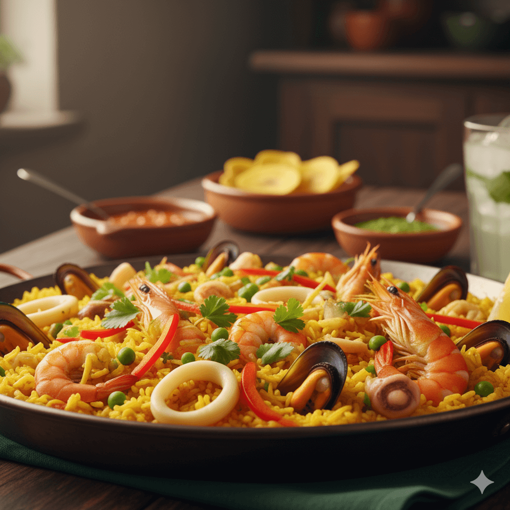 ¿Te apetece un viaje de sabor a la costa? Este arroz está cargado con los mejores mariscos frescos, sazonado a la perfección. Una explosión de sabor que te transportará al mar.