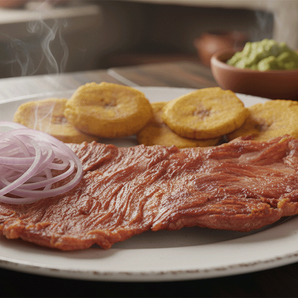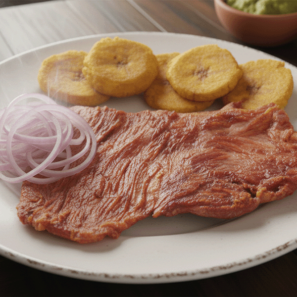 Finas láminas de carne de cerdo sazonada y secada al sol. Posteriormente asada a la parrilla, es el acompañamiento perfecto para mote o yuca. Un sabor ahumado, salado y muy rústico.