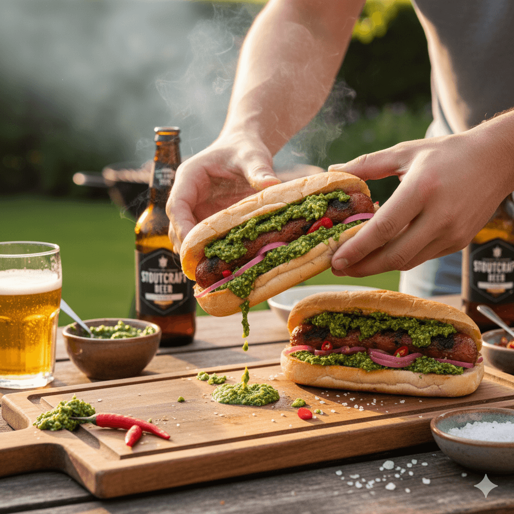 El sándwich callejero más famoso y popular. Un jugoso chorizo asado a la parrilla, servido dentro de un pan crujiente y aderezado con la inconfundible salsa chimichurri. Un bocado rápido, intenso y delicioso.
