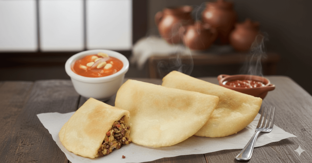 Crujientes por fuera, suaves por dentro. Estas empanadas se hacen con masa de morocho (maíz grueso) y se rellenan con un guiso de carne especiado. El snack perfecto para la tarde.