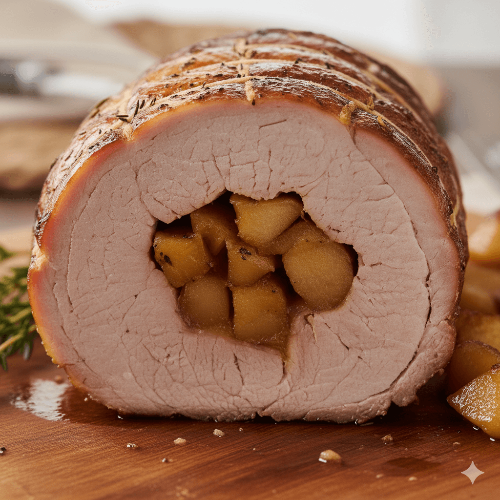 de Manzana Si creías que el cerdo era aburrido, prepárate para cambiar de opinión. Un jugoso lomo relleno de una mezcla dulce y ácida de manzana. Es perfecto para una cena inolvidable.