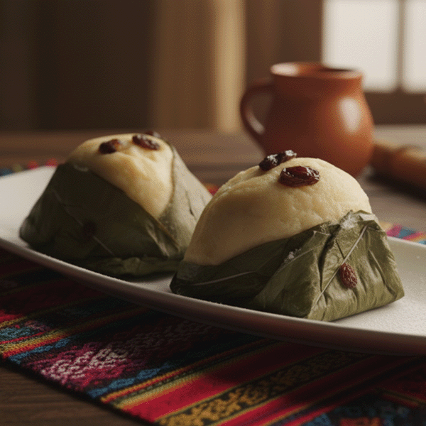 El tamal dulce y esponjoso de la sierra. Hecho con harina de maíz, mantequilla y pasas, se cocina al vapor envuelto en hojas de achira o plátano, dándole un aroma inigualable. Perfecto para el café.