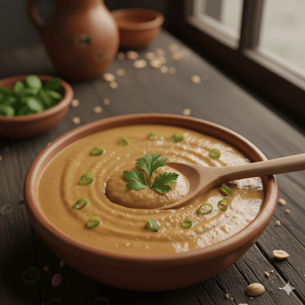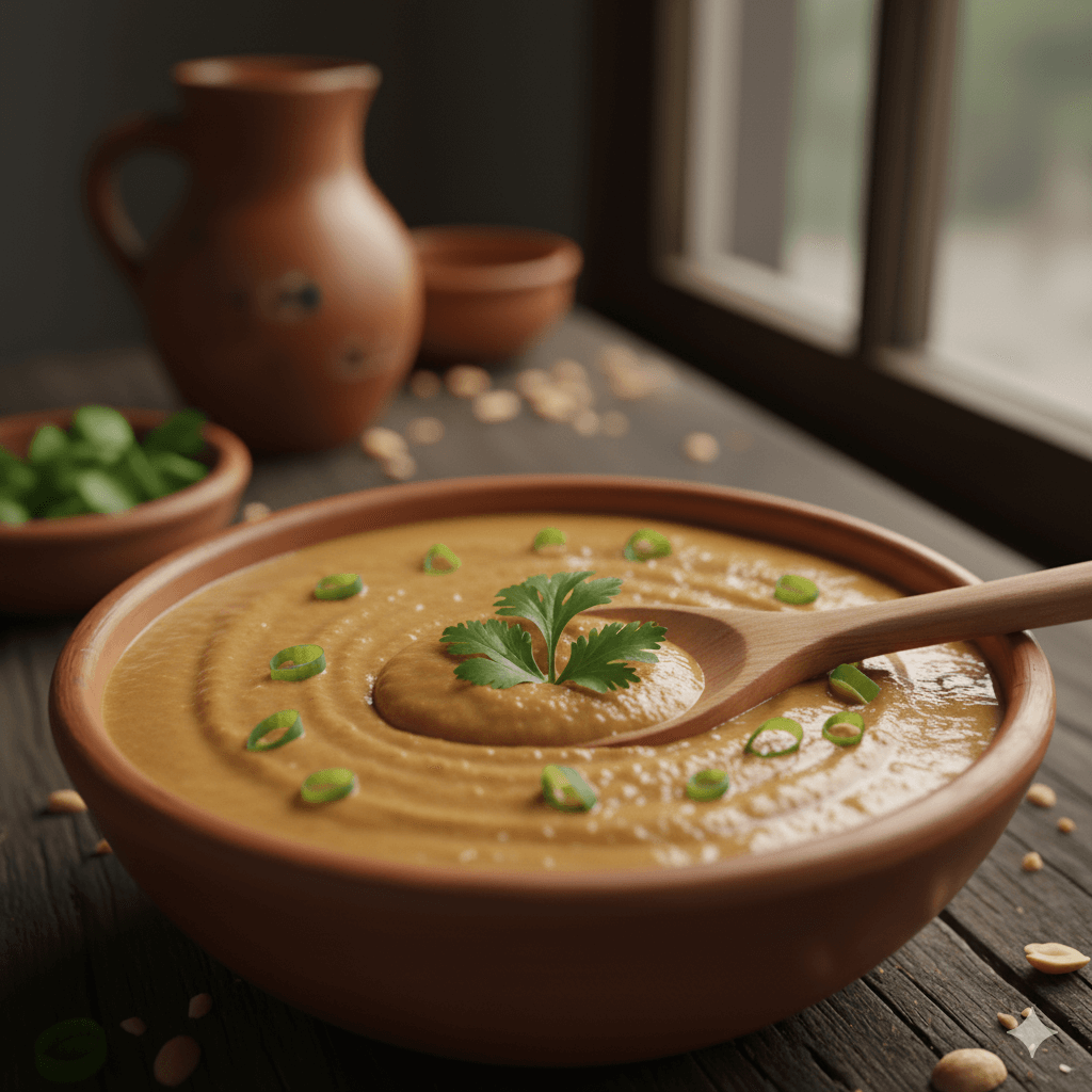 Una salsa cremosa y versátil que transforma cualquier plato. El maní tostado y molido se fusiona con especias para crear un acompañamiento denso y lleno de sabor. Es perfecta para acompañar patacones, carnes o verduras.