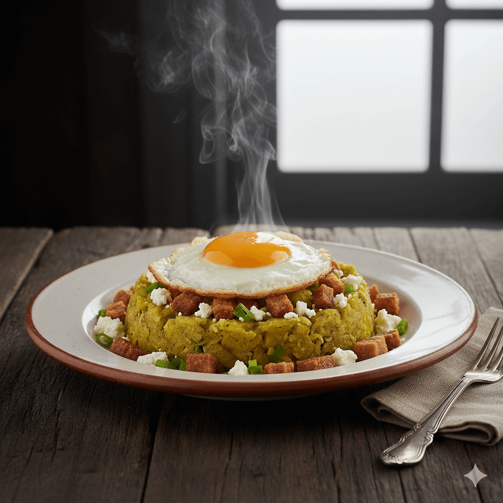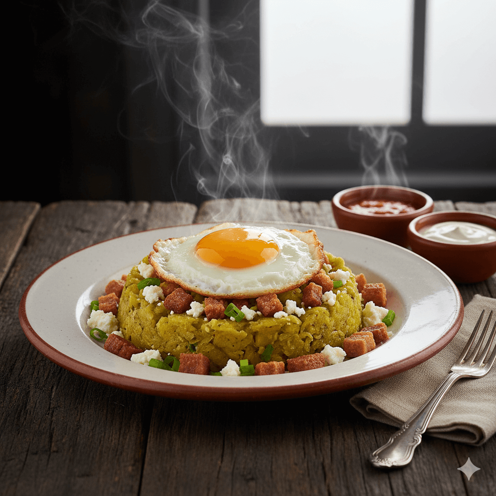 El desayuno costeño que te dará energía para todo el día. Plátano verde machacado y mezclado con huevo revuelto y queso. Un plato rústico, potente y delicioso, el favorito de la provincia de El Oro.